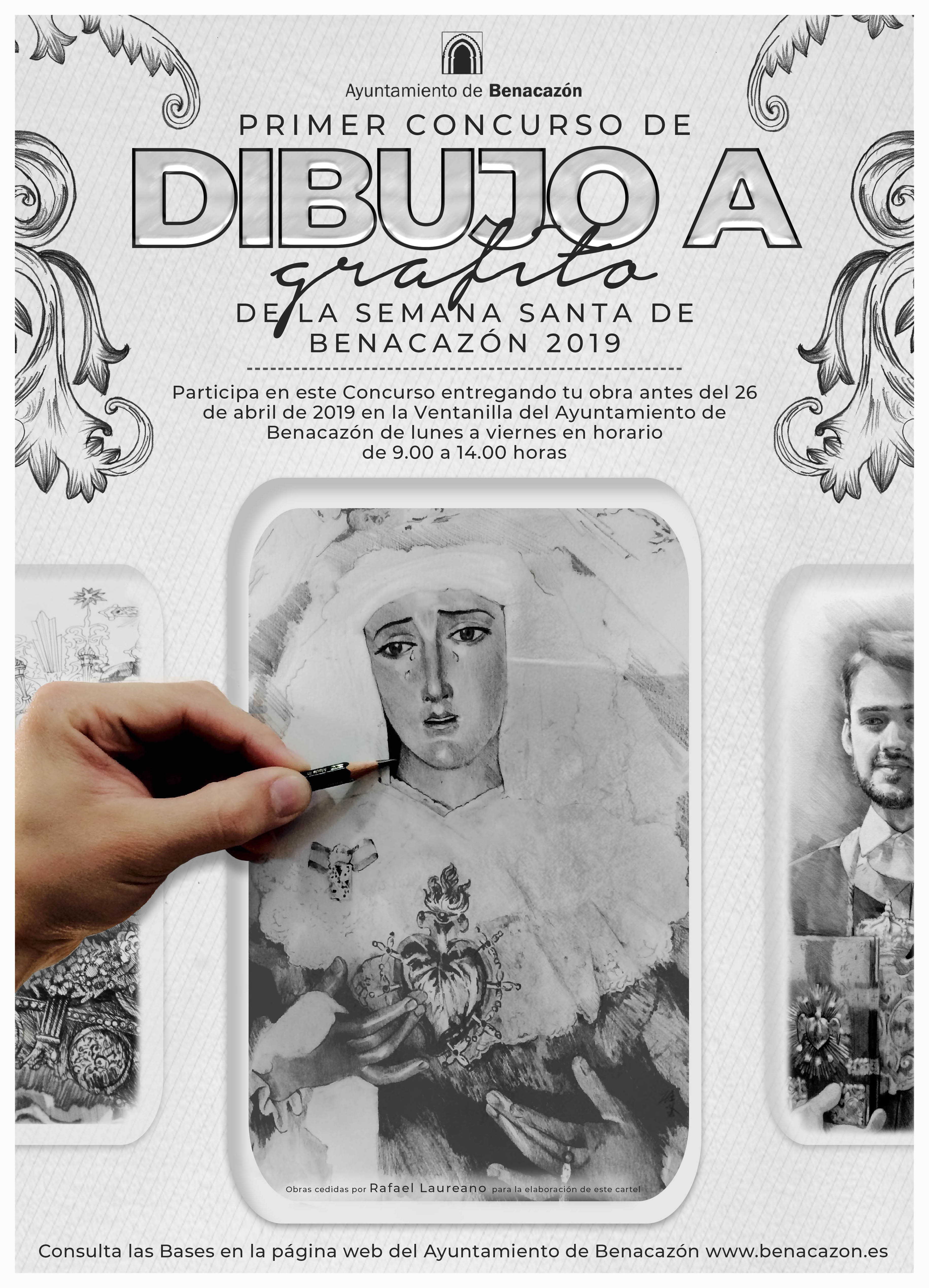 Desde el Ayuntamiento de Benacazón te informamos sobre el Concurso de Dibujo a Grafito de la Semana Santa de Benacazón 2019, organizado por nuestras Delegaciones de Cultura y de Comunicación contando con la colaboración de las Hermandades locales de Penitencia, Soledad y Vera Cruz y el artista local Rafael Laureano que, además de participar en la elaboración de las bases, ha cedido imágenes de sus obras para ilustrar el cartel de este Concurso.
