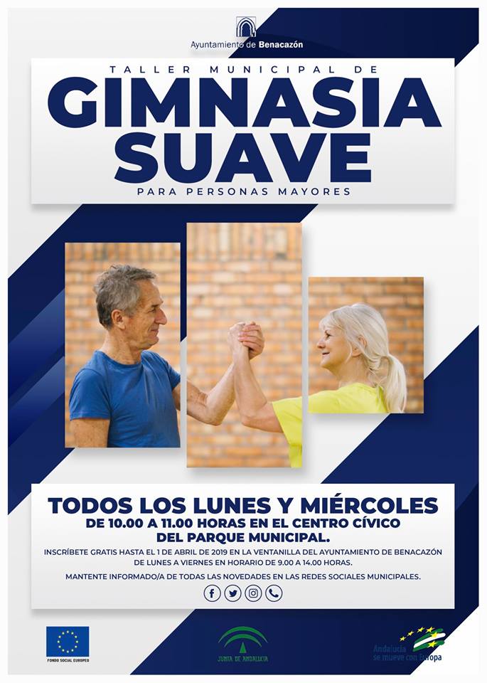 Desde el Ayuntamiento de Benacazón tenemos el placer de informarte sobre el nuevo Taller de Gimnasia Suave para Personas Mayores, una actividad organizada por nuestra Delegación de Asuntos Sociales que se impartirá todos los lunes y miércoles de 10.00 a 11.00 horas en el Centro Cívico del Parque Municipal.