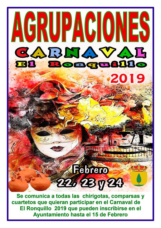 20:30 h: PASACALLES DE AGRUPACIONES Y DISFRACES Desde la Pza. de España hasta el Salón Multifuncional. Recorrido acompañado por la Charanga Arte y Compás