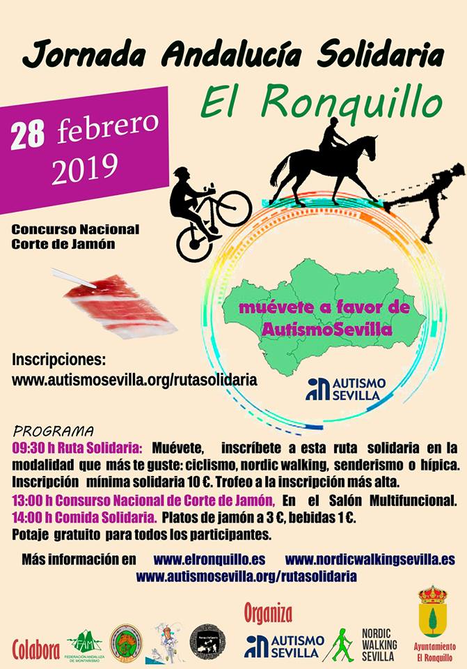 La "Jornada Andalucía Solidaria – El Ronquillo" consiste en la realización de un evento deportivo multidisciplinar (Senderismo, Marcha Nórdica, BTT e Hípica) con fines solidarios, sin ánimo de lucro. Es una prueba con carácter no competitivo, con varios recorridos, adaptados a las necesidades de cada participante: