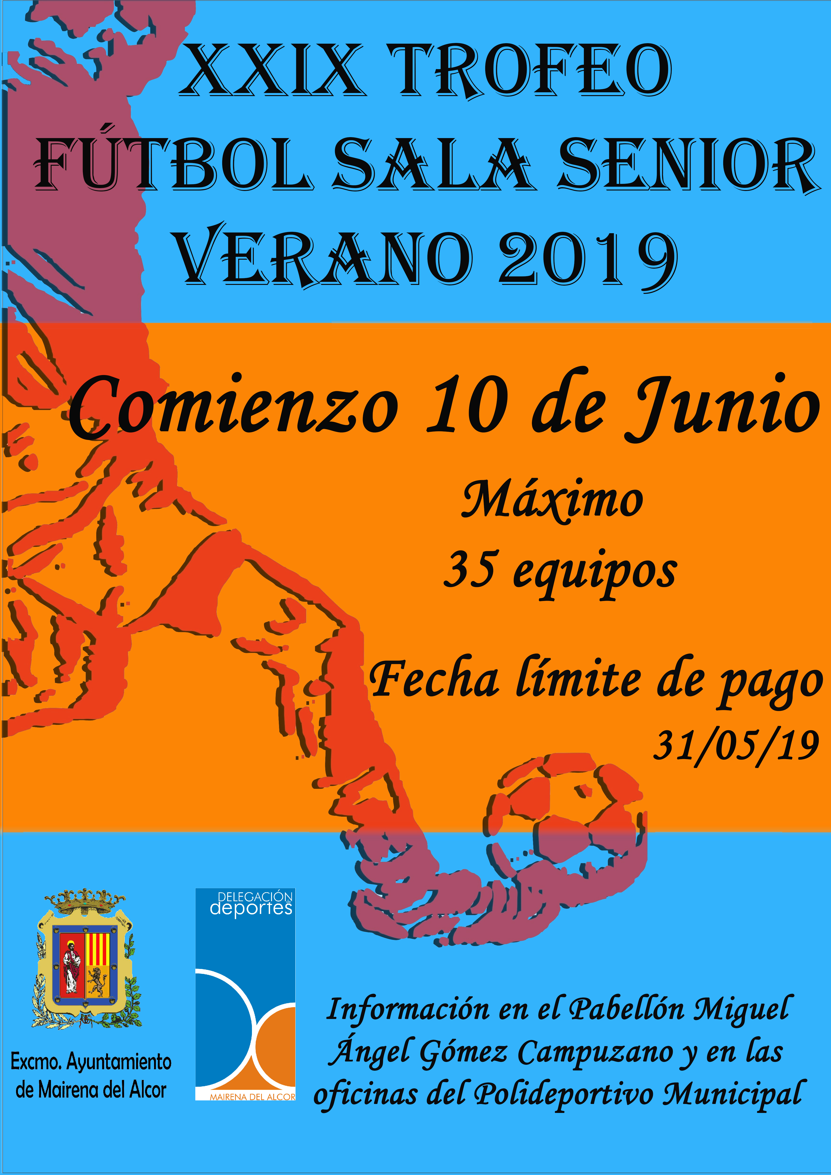 El XXIX Trofeo de Fútbol Sala de Verano que organiza la Delegación de Deportes del Ayuntamiento de Mairena del Alcor, comenzará el 10 de junio y los partidos se disputarán en el Pabellón Miguel Ángel Gómez Campuzano. Se admitirán un máximo de 35 equipos que pueden inscribirse del 17 al 31 de mayo.