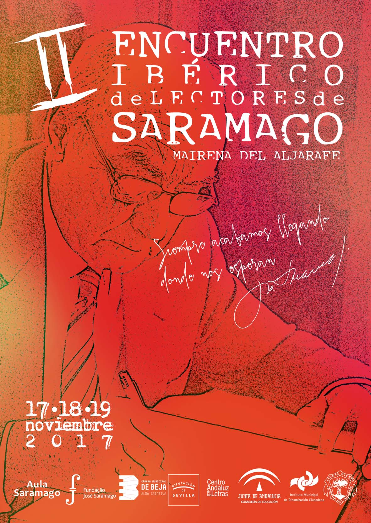 El evento más relevante del fin de semana es el II Encuentro Ibérico de Lectores de Saramago que se iniciará con la recepción de los participantes y las primeras exposiciones, además de un cuenta-cuentos, el viernes 17, a las 17:30 horas, en la Biblioteca Municipal José Saramago. Posteriormente, a las 19:30 horas el alcalde, Antonio Conde, junto a Joâo Queirós, cónsul de Portugal en Sevilla, y Pilar del Río, de la Fundación José Saramago, inaugurará el encuentro. Para cerrar el viernes, a las 20 horas se emitirá un documental inédito sobre la visita que el escritor portugués realizó a Mairena en el año 2003.