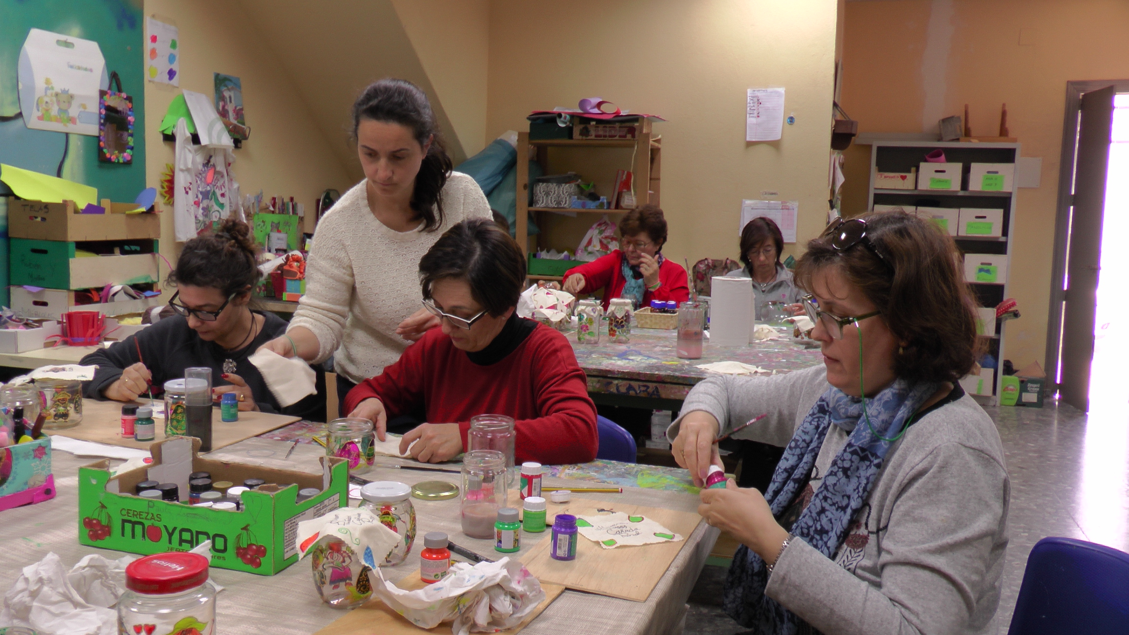 Un grupo de mujeres de Cañada Rosal asiste estos días a un taller de pintura en vidrio y tela, convocado con motivo de la celebración del Día Internacional de la Mujer, desde la Delegación de Igualdad del Ayuntamiento carrosaleño. Los botes pintados, resultado de este taller, se pondrán a la venta en el mercado colonial que se celebrará en las próximas semanas en el municipio.