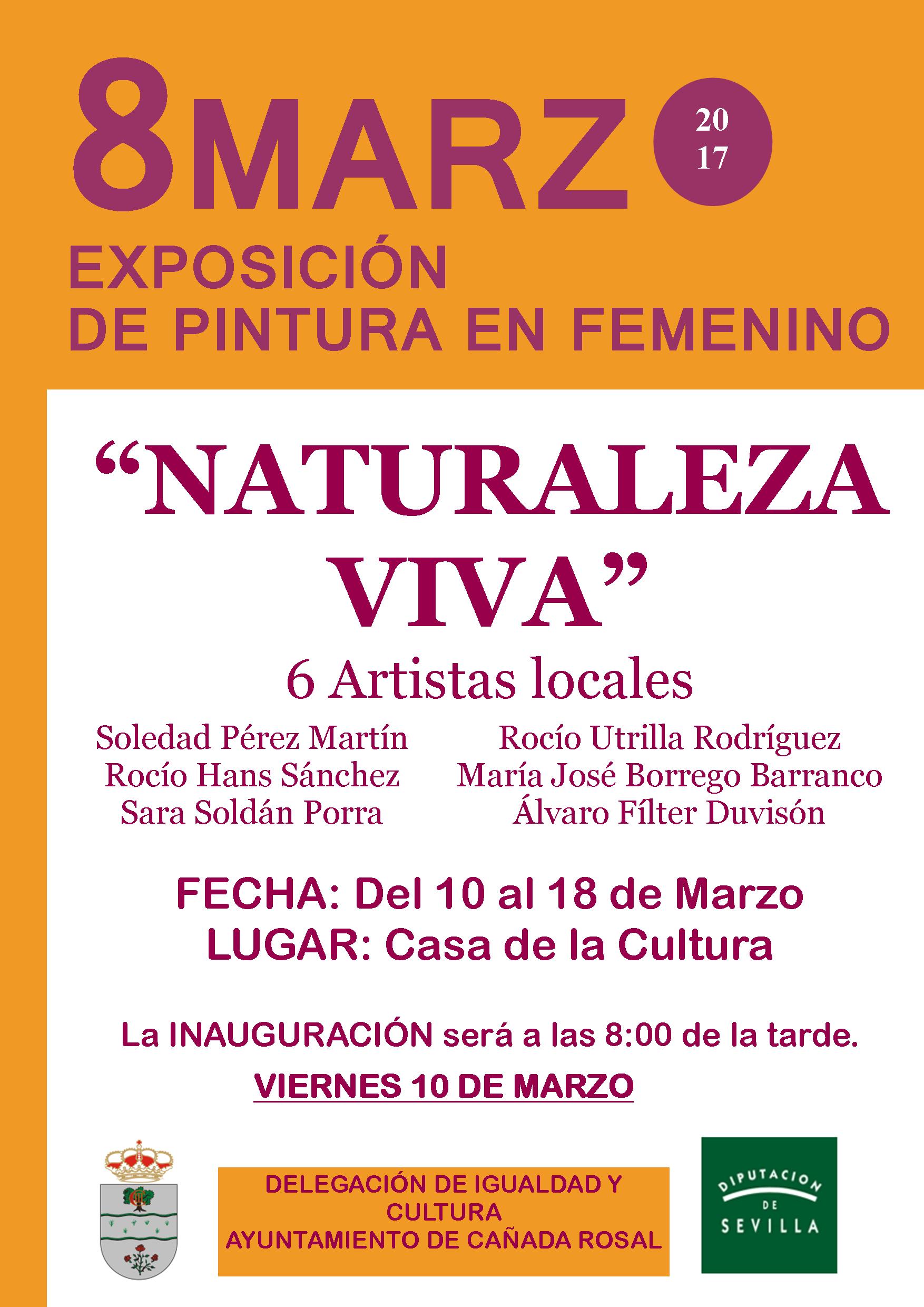 Por otro lado, destacar que el próximo viernes, día 10, se inaugurará la exposición "Naturaleza viva", en la Casa de la Cultura, y que podrá visitarse hasta el día 18. En la misma tomarán parte Soledad Pérez Martín, Rocio Hans Sánchez, Sara Soldán Pora, María José Borrego Barranco, y Álvaro Fílter Duvisón.