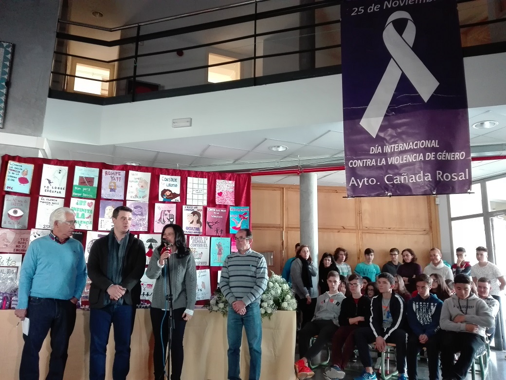 Los cuatro cursos de la ESO del IES Cañada Rosal han asistido a la entrega de premios a los ganadores del concurso de carteles organizado desde el Ayuntamiento, a través de su delegación de Igualdad. Esta actividad ha tenido por finalidad concienciar a los jóvenes de la importancia que tiene el denunciar la violencia contra las mujeres.