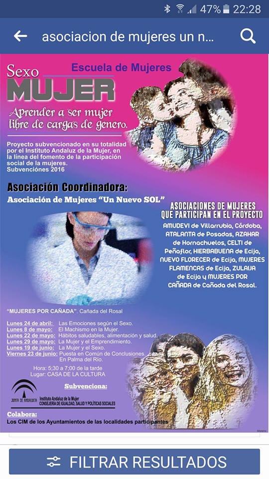 La asociación de mujeres de Cañada Rosal "Mujeres Por Cañada", organiza una serie de actividades a todas las mujeres. En primer lugar, el próximo lunes organiza un taller sobre el machismo y la mujer en la Casa de la Cultura, taller que será totalmente gratuito. Además, el día 13 de mayo se está organizando un viaje para disfrutar de los patios de Córdoba.