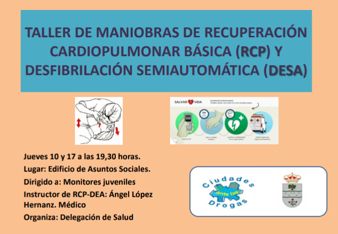 Mañana, 10 de mayo y el próximo jueves 17, se impartirá un taller sobre Maniobras de Recuperación Cardiopulmonar Básica (RCP) y de Desfibrilación Semiautomática (DESA). Serán dos jornadas muy interesantes en las que, todo aquel que quiera, podrá aprender y profundizar en este tema junto al médico Ángel López Hernanz, quien será el encargado de impartir este taller.