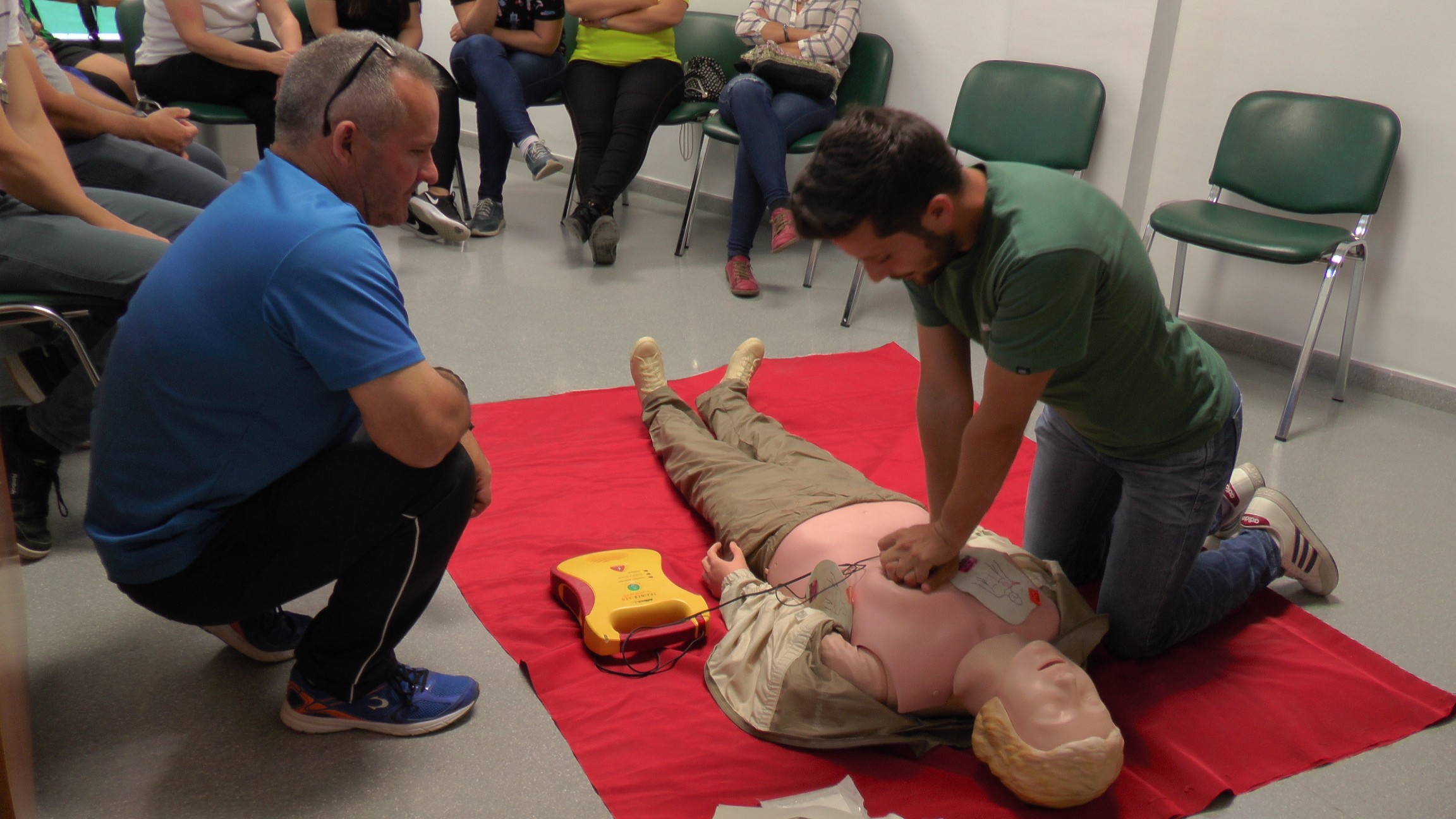 Las últimas dos semanas, Cañada Rosal ha acogido un taller sobre Maniobras de Recuperación Cardiopulmonar Básica (RCP) y de Desfibrilación Semiautomática (DESA). El curso se impartió los jueves 10 y 17 de mayo, en horario de tarde, en el Edificio de Asuntos Sociales del municipio. El taller, estaba dirigido a monitores juveniles que aprendieron y profundizaron en el tema, junto al médico Ángel López Hernanz. El objetivo del curso ha sido enseñar estas técnicas a los trabajadores, para que lleven a cabo su tarea, con la mayor seguridad posible y adquieran los conocimientos sanitarios adecuados para atender a los niños y jóvenes. El taller ha sido todo un éxito y gracias a este curso, los monitores de Cañada Rosal están preparados para desempeñar su trabajo de forma correcta y dominando los métodos existentes de recuperación cardiopulmonar y desfibrilación.