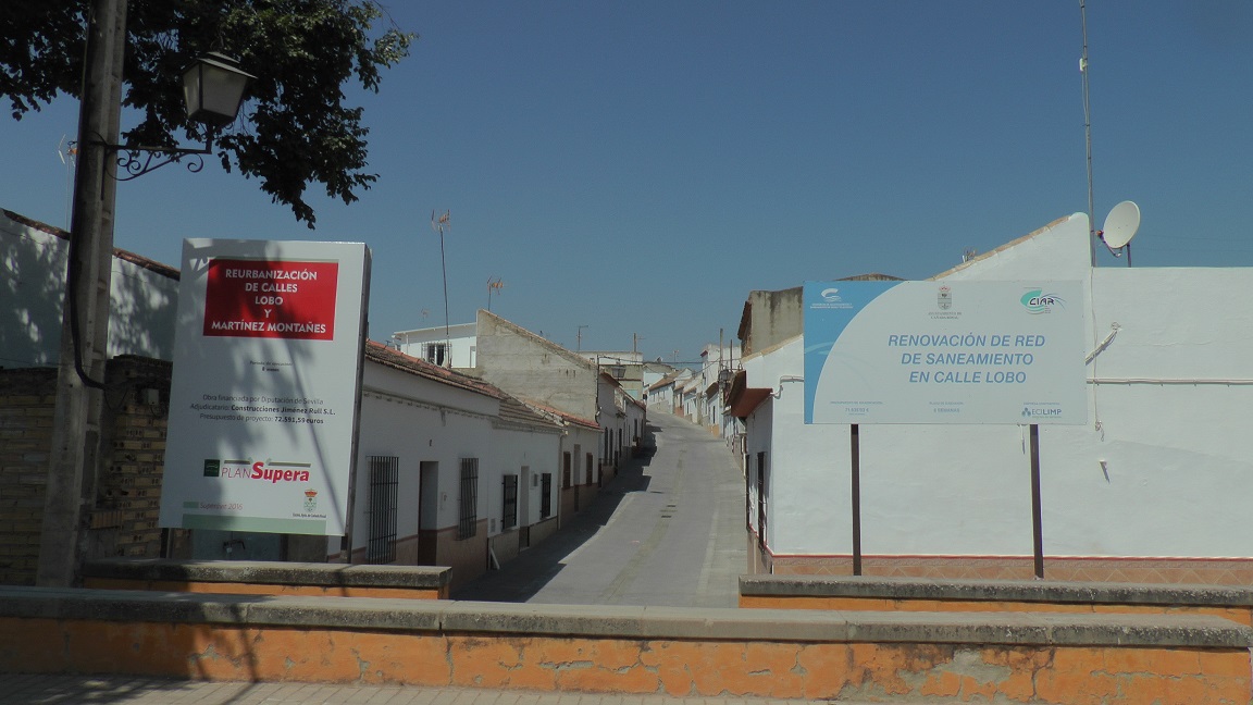 Tras varias semanas de actuaciones, hace unos días finalizaron por completo las obras de reurbanización de la conocida calle Lobo. Unas actuaciones que han concluido con éxito con las que se ha rehabilitado toda la vía. Se trata de una obra que ha sido de gran importancia en la localidad y donde destaca la inclusión de una plataforma única en la calzada, con el objetivo de ir acorde a la normativa vigente. Las obras han tenido dos fuentes de financiación, por un lado CIAR, el Consorcio de Aguas, que se ha centrado principalmente en realizar las actuaciones de abastecimiento y saneamiento de aguas y por otro, la Diputación de Sevilla, que ha financiado la otra mitad del proyecto, dentro del Plan Supera V, englobando actuaciones de revestimiento o acabados, entre otras. La totalidad de estas obras ha tenido una inversión de alrededor de 145.000 euros, y cada una de estas fuentes ha aportado unos 72.000. Además de estas actuaciones en la calle Lobo, también se han llevado a cabo otras en la calle Martínez Montañés y en el tramo final de la Avenida del Lagar.
