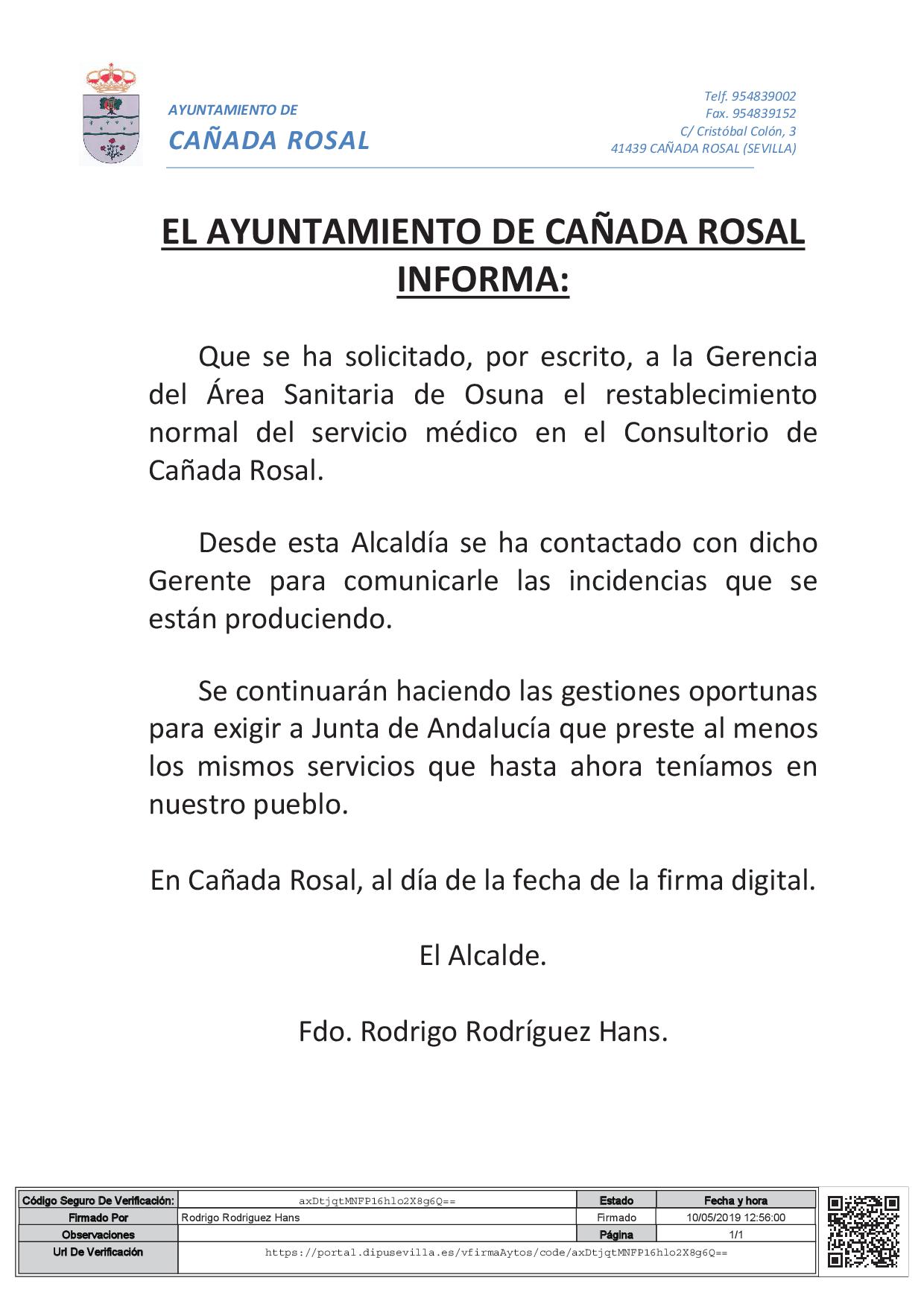 Imagen Ubicación Categoría noticia Salud Mostrar en el carrusel de la sección Sí Fecha Vie, 10/05/2019 - 16:59 Más información http://www.canadarosal.es/es/actualidad/noticias/COMUNICADO-DEL-AYUNTAMIENTO-DE…