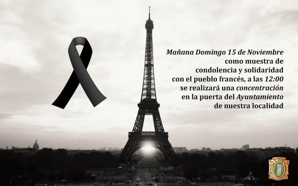 Mañana Domingo a las 12 de la mañana en la puerta del Ayuntamiento, habrá una concentración como muestra de condolencia y solidaridad hacia el pueblo francés