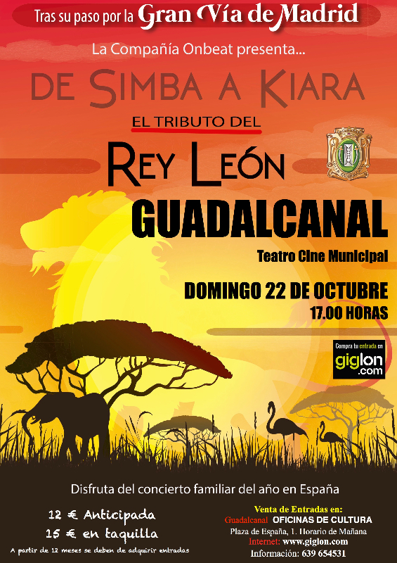 El espectáculo del año ya está en gira, el primer tributo Autorizado de El Rey León, donde podrás disfrutar de las canciones de las películas El Rey león 1, 2 y 3 con impresionantes voces en directo, apasionantes coreografías y atractiva puesta en escena. No te lo pierdas!!!