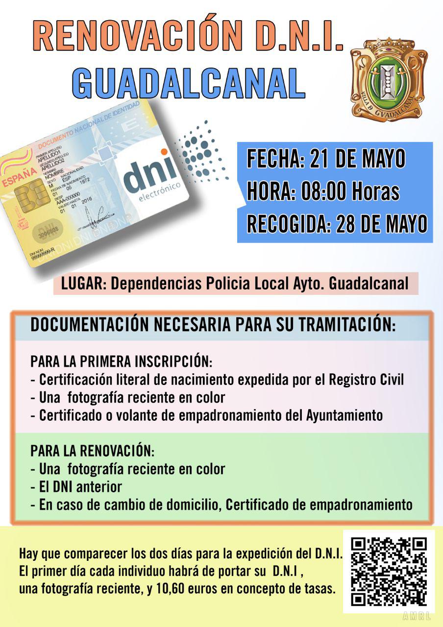 RENOVACIÓN DEL DNI: LUNES 21 DE MAYO, A PARTIR DE LAS 8:00 HORAS.