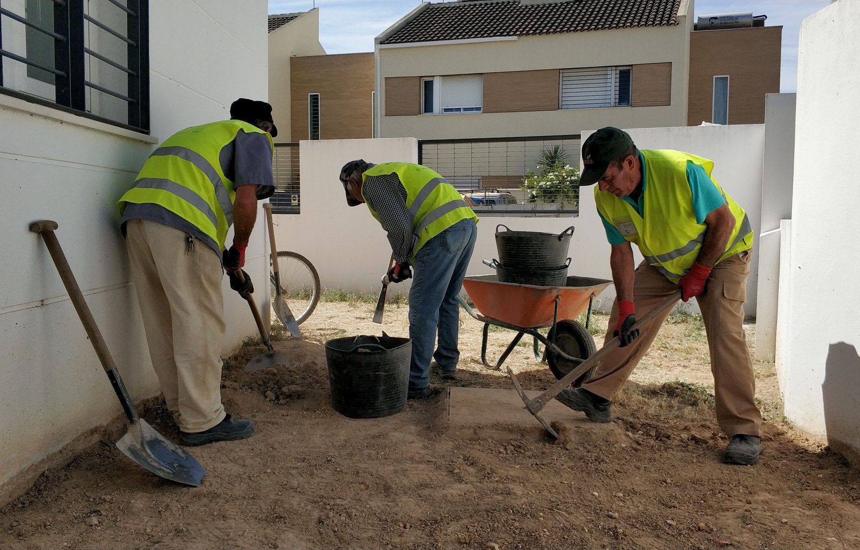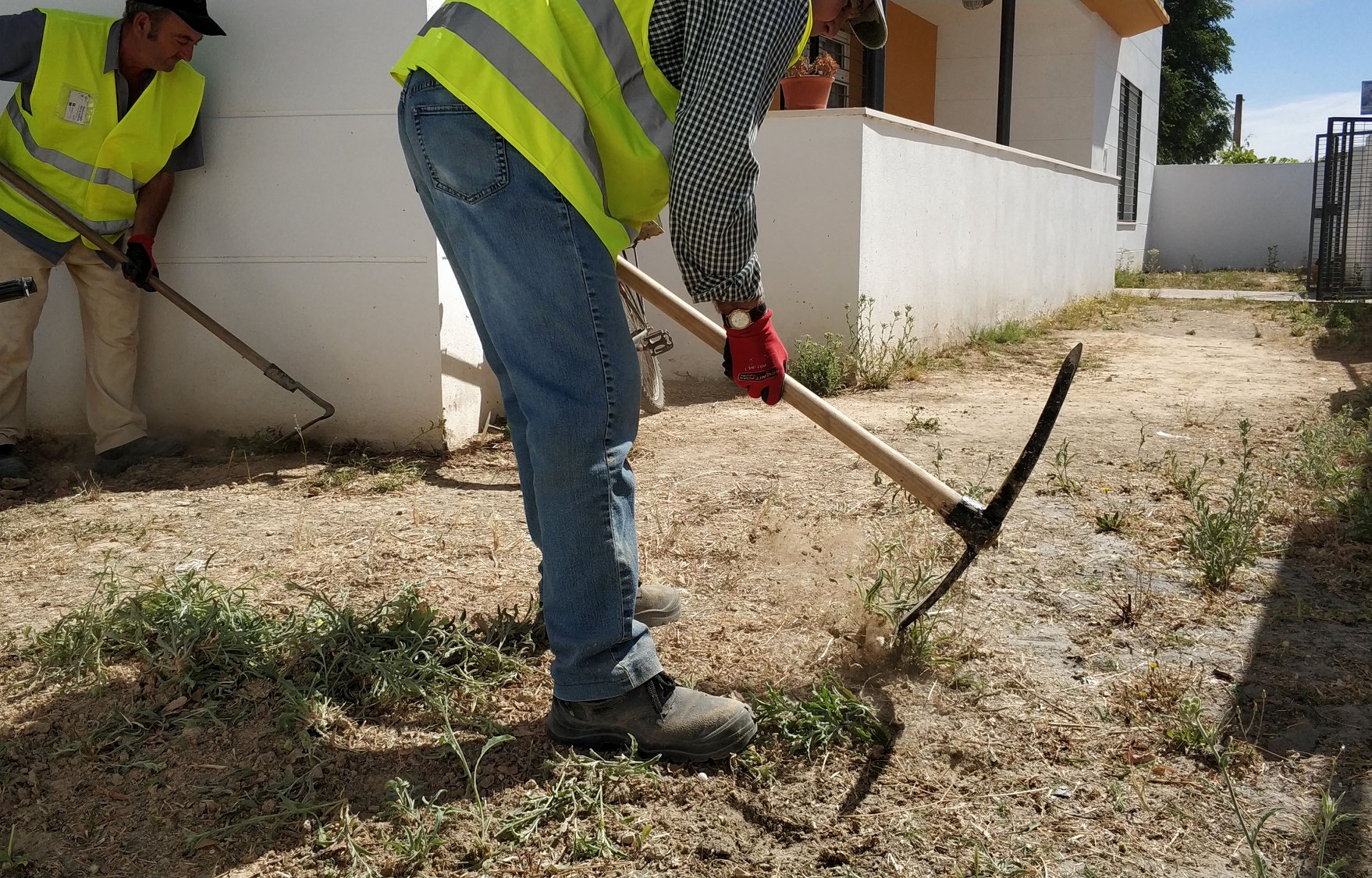 En cuanto a la Escuela Infantil "Peter Pan", los trabajos se están centrando en el desbrozado y adecuación de los patios exteriores en previsión de que en los próximos días tenga lugar la instalación del césped artificial. Estos trabajos están siendo desarrollados por operarios de construcción recientemente incorporados gracias al Programa de Emple@45 de la Junta de Andalucía y el Fondo Social Europeo.