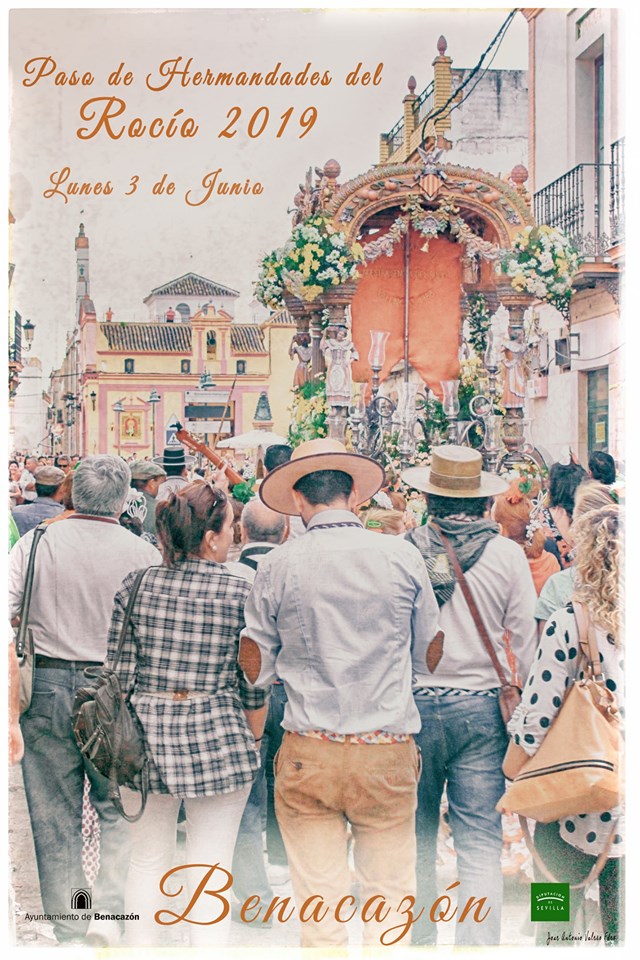 El cartel tiene como protagonista el Simpecado de la Hermandad del Rocío de Valencia a su paso por nuestro pueblo, momentos antes de la presentación a la Hermandad del Rocío de Benacazón. Las Hermandades que realizan su paso por el término municipal de Benacazón a partir del día 3 de junio son Almería, Murcia, Valencia, Albaida, Olivares, Sanlúcar la Mayor y Umbrete.