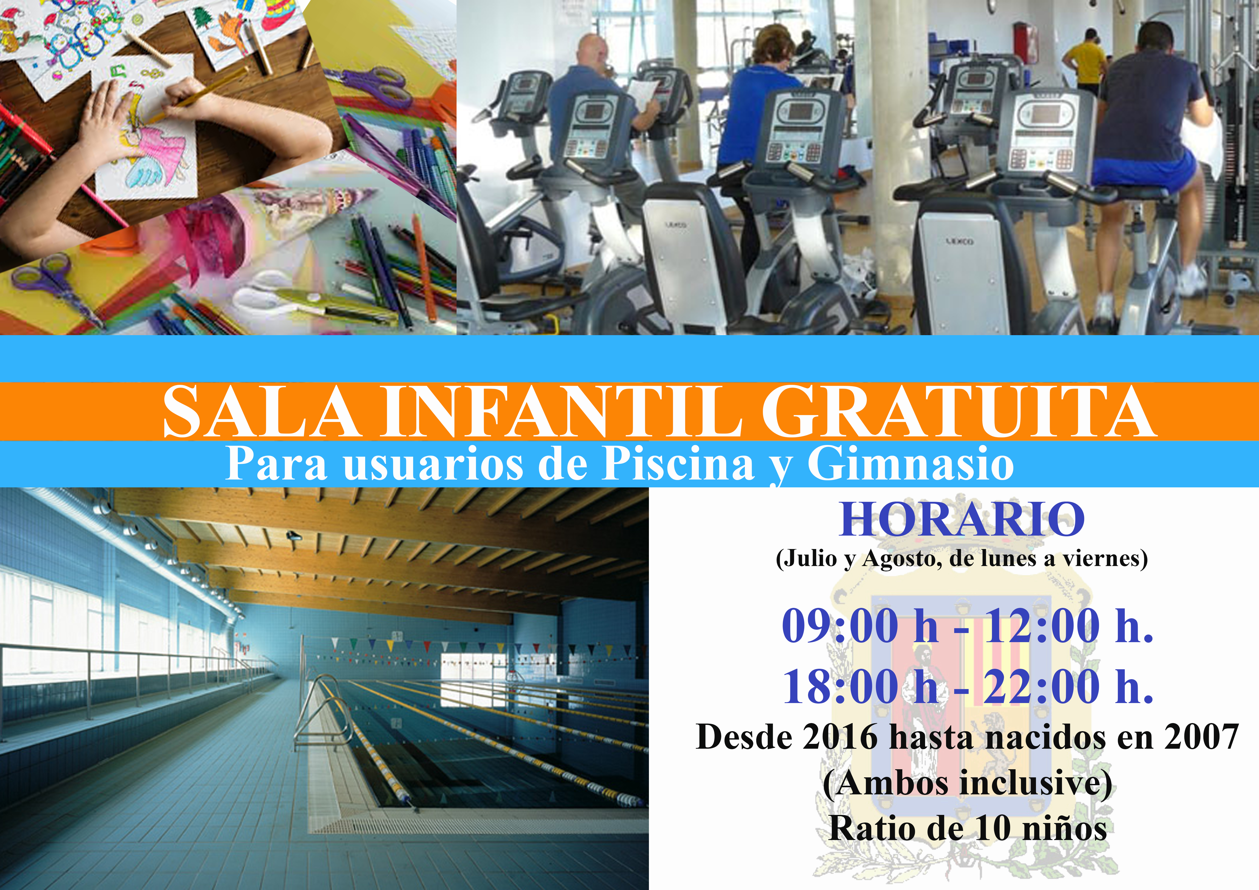 La sala infantil para los usuarios de la piscina y el gimnasio también abre en verano. Durante los meses de julio y agosto, el horario será de 9.00 a 12.00 horas y de 18.00 a 22.00 horas. Este servicio gratuito va dirigido a menores nacidos entre los años 2007 a 2016, ambos inclusive.