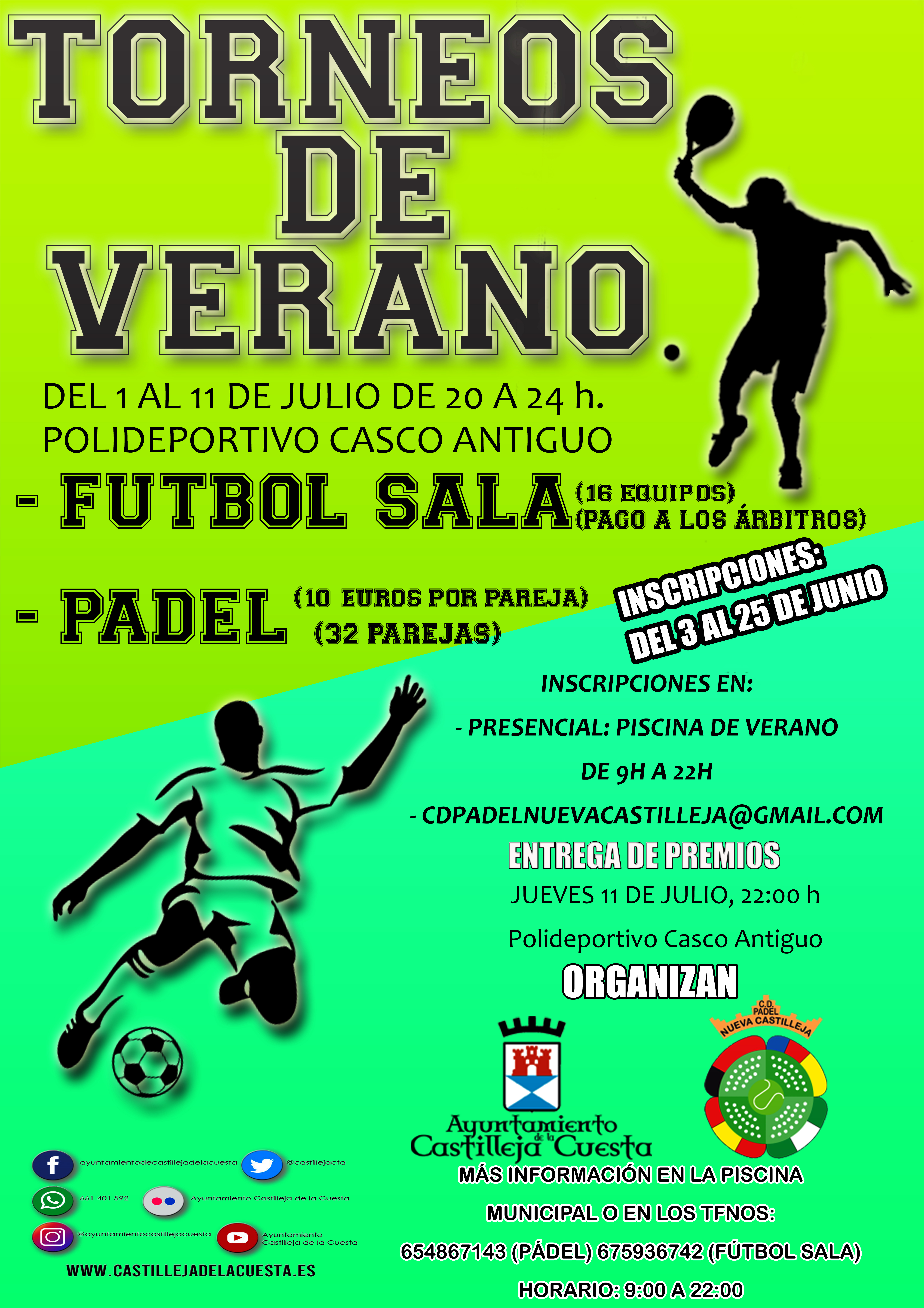 El Ayuntamiento de Castilleja de la Cuesta organiza, un verano más, los torneos deportivos que arrancarán el próximo mes de julio. Ya está abierto el plazo de inscripción.