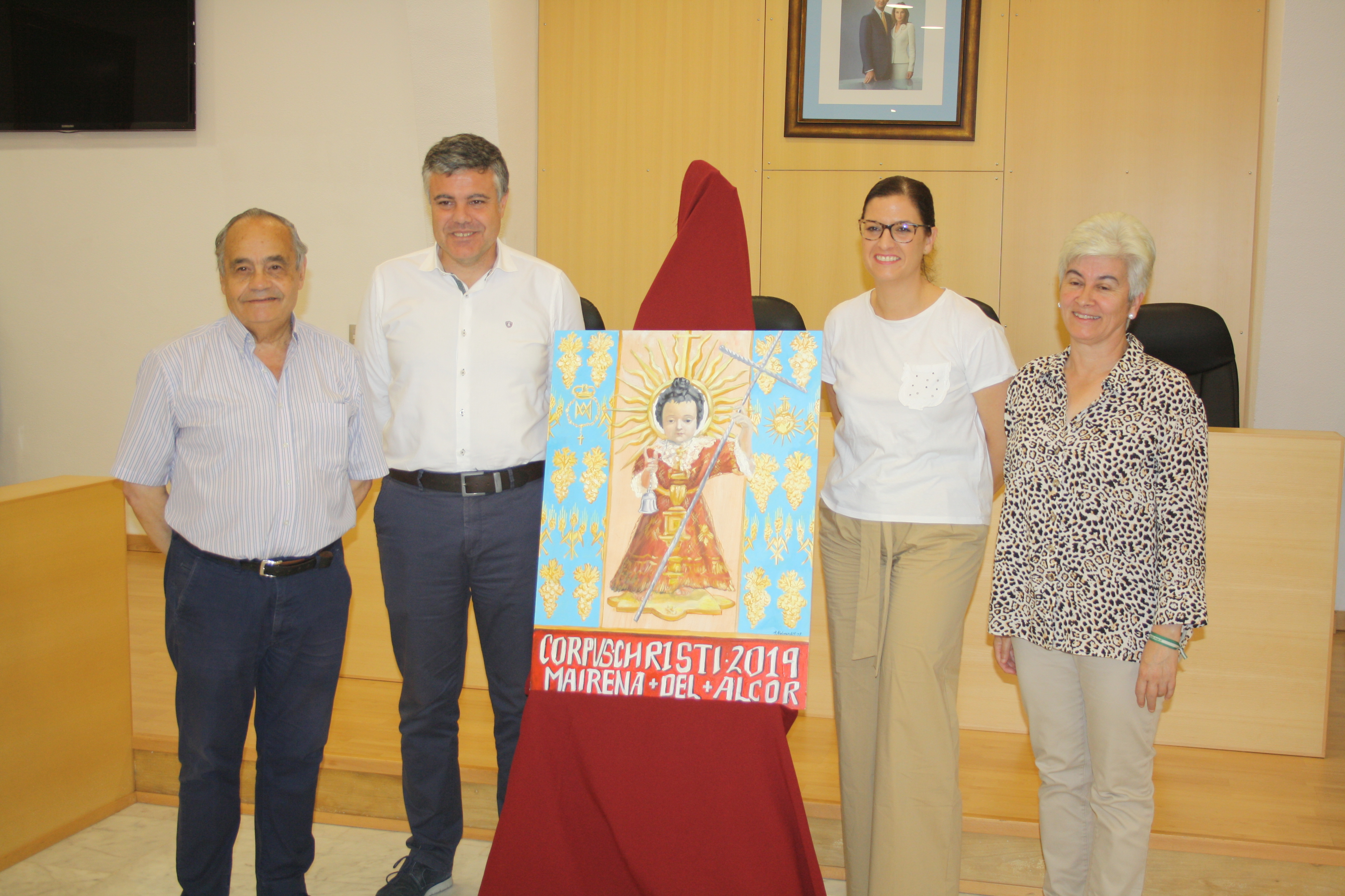 Esta mañana se ha presentado el cartel de la Solemnidad del Corpus Christi en el salón de plenos del Ayuntamiento de Mairena del Alcor. Han asistido al acto el alcalde, Juan Manuel López; las delegadas en funciones de Cultura y Educación y Bienestar Social e Igualdad, Gloria Guillén y María Antúnez, respectivamente; y el hermano mayor de la Archicofradía Sacramental, Eusebio Pérez.