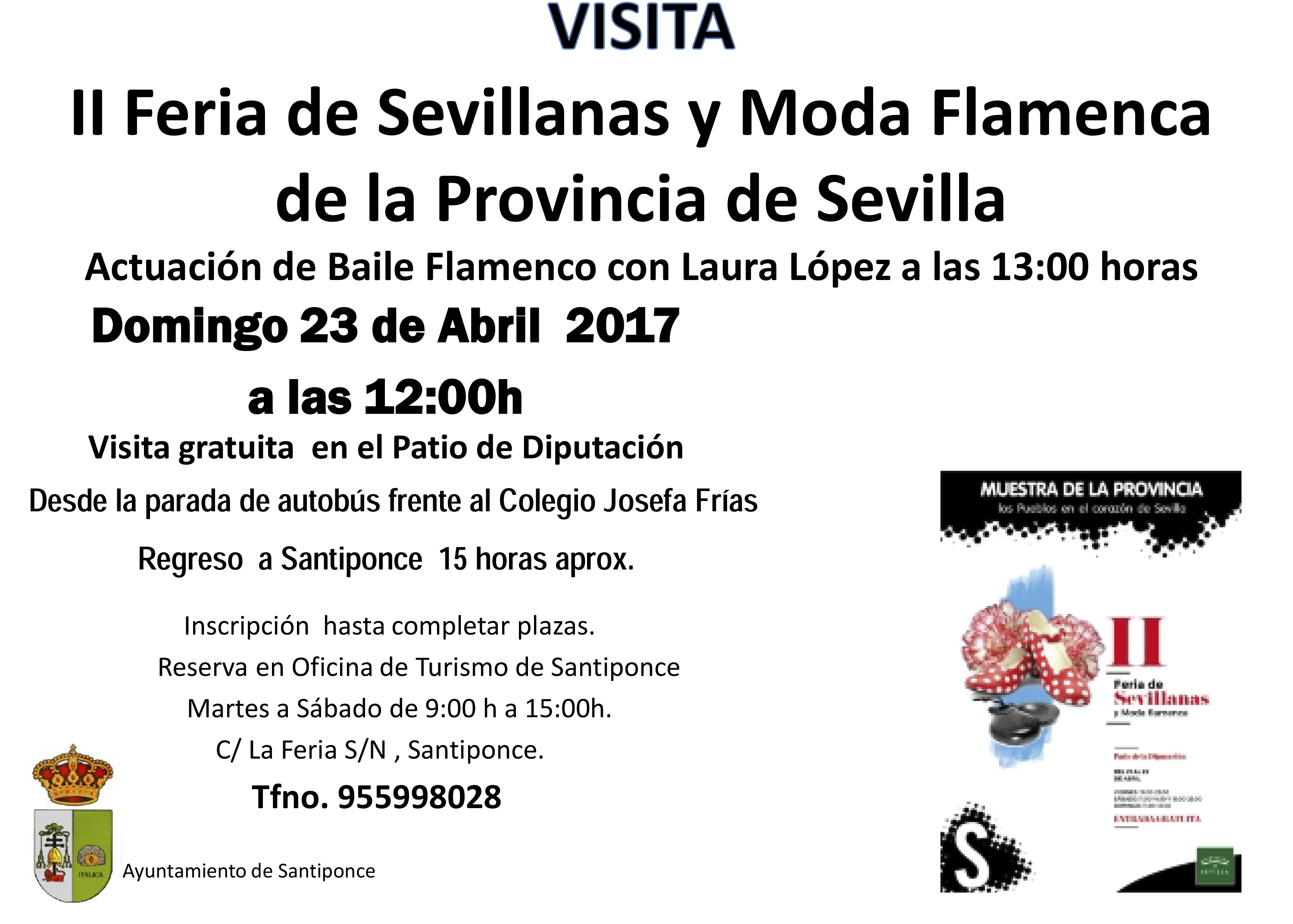 Imagen Ubicación Categoría noticia Turismo Mostrar en el carrusel de la sección No Fecha Mar, 18/04/2017 - 16:46 Más información http://www.santiponce.es/es/actualidad/noticias/Visita-a-la-II-Feria-de-Sevilla…