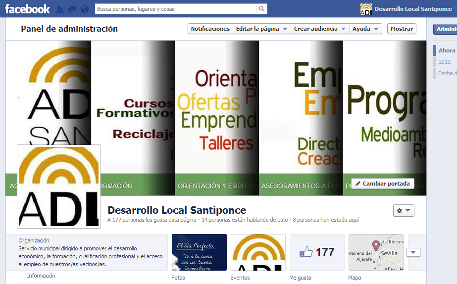 En la Agencia de Desarrollo Local del Ayuntamiento de Santiponce hemos abierto una página de facebook con objeto de acercar la información de nuestros servicios a un mayor número de personas. En ella realizamos publicaciones sobre temas de empleo, formación y emprendimiento, además de informar de las actividades que realizamos. Puedes realizar consultas, comentarios, y publicar contenido interesante.