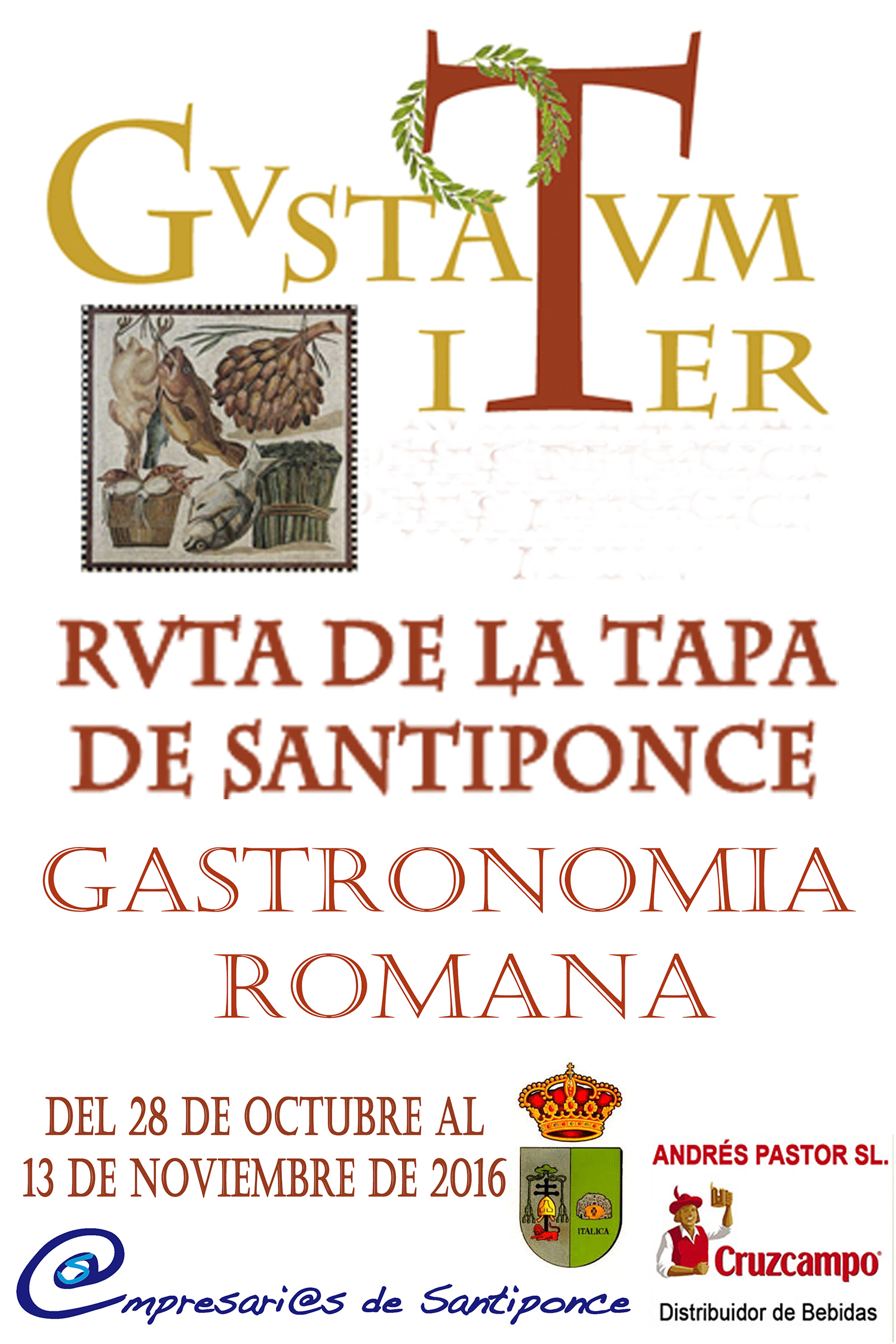 Imagen Ubicación Categoría noticia Desarrollo Local Mostrar en el carrusel de la sección No Fecha Jue, 27/10/2016 - 17:17 Más información http://www.santiponce.es/es/actualidad/noticias/GVSTATUM-ITER-Ruta-de-la-Tapa-d…