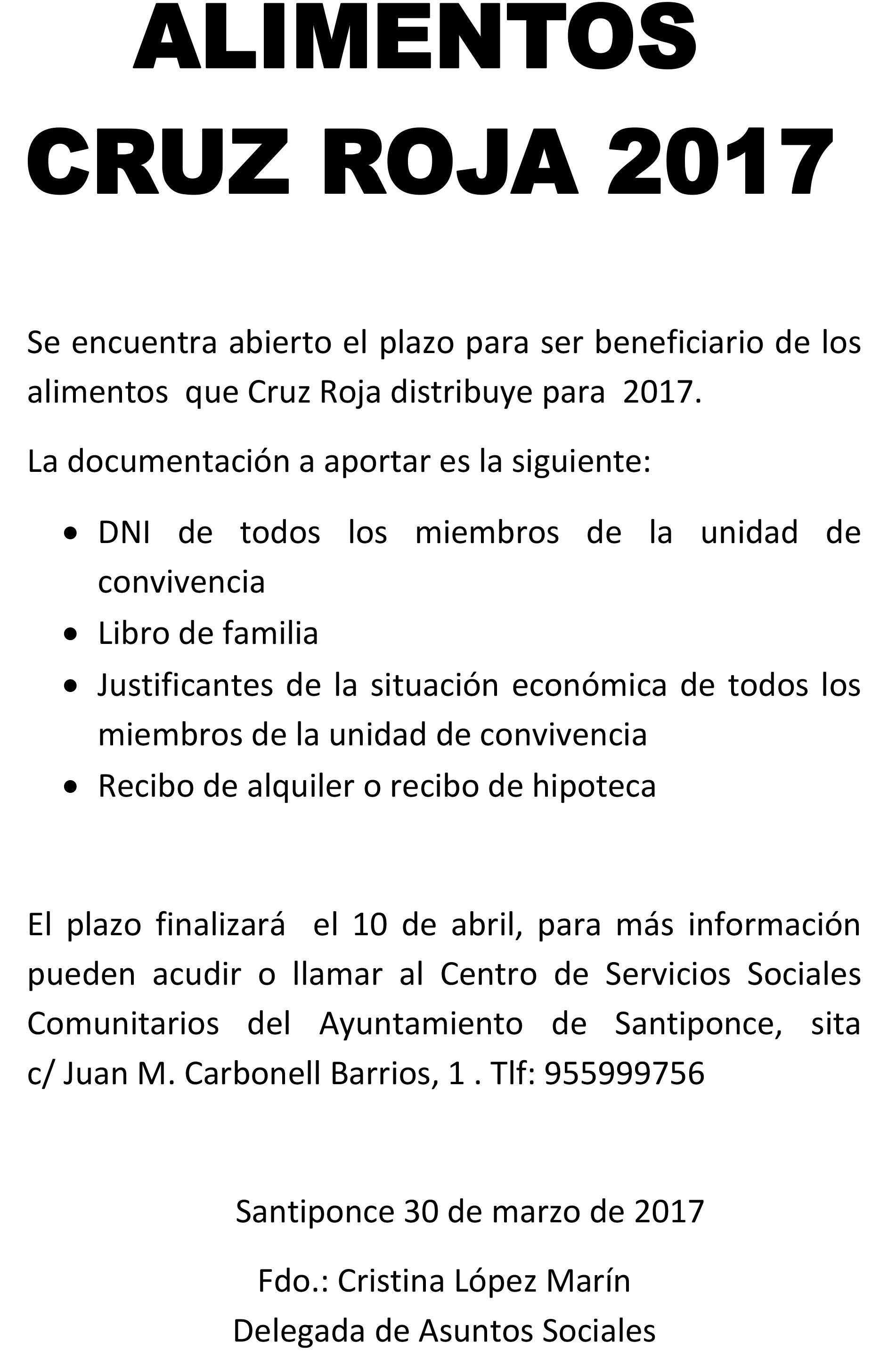Imagen Ubicación Categoría noticia Asuntos Sociales Mostrar en el carrusel de la sección No Fecha Lun, 03/04/2017 - 12:39 Más información http://www.santiponce.es/es/actualidad/noticias/Alimentos-de-Cruz-Roja-2017/