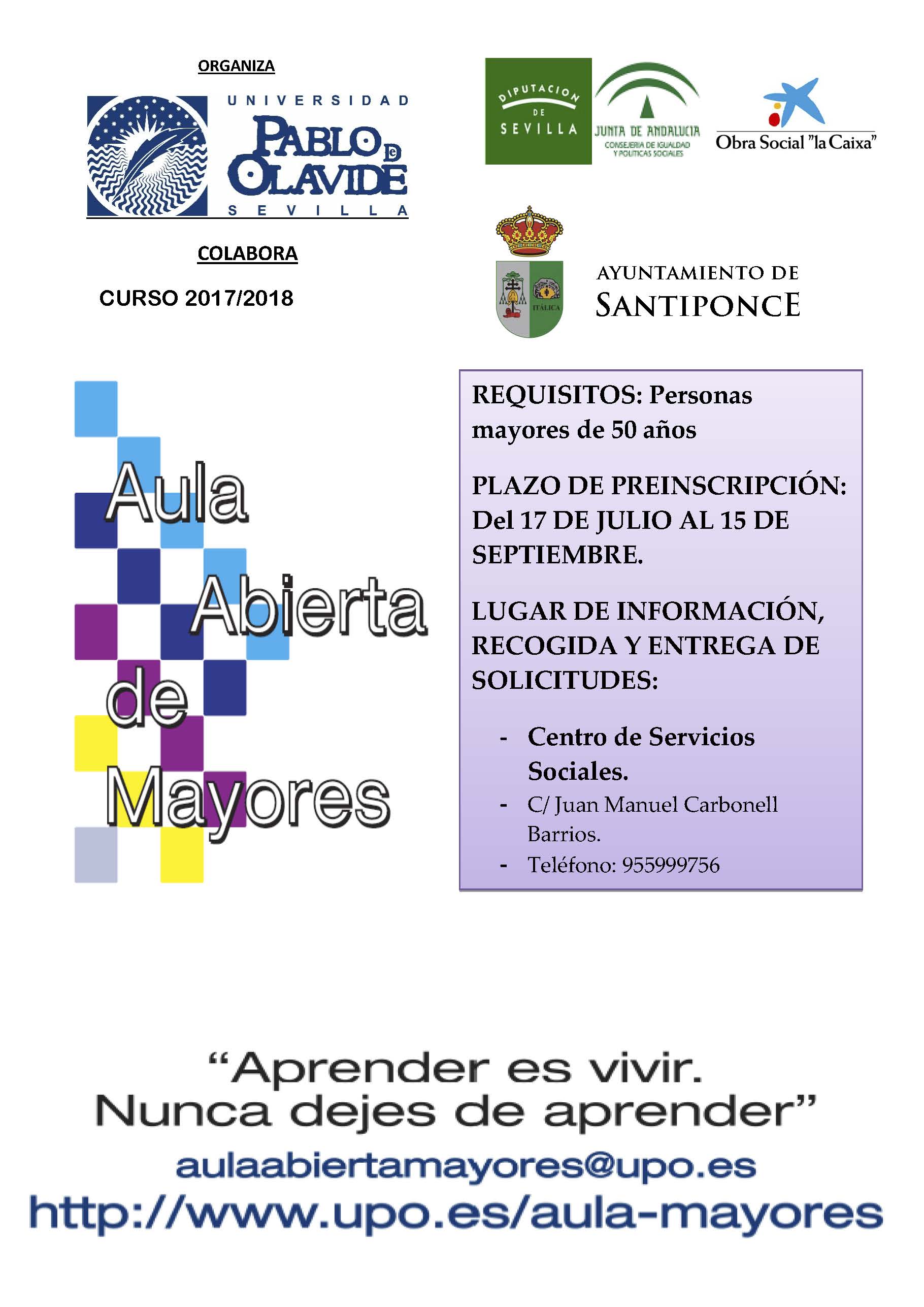 Aún sigue abierto el plazo de pre-inscripción al Aula Abierta de Mayores, ¡¡No esperéis al último