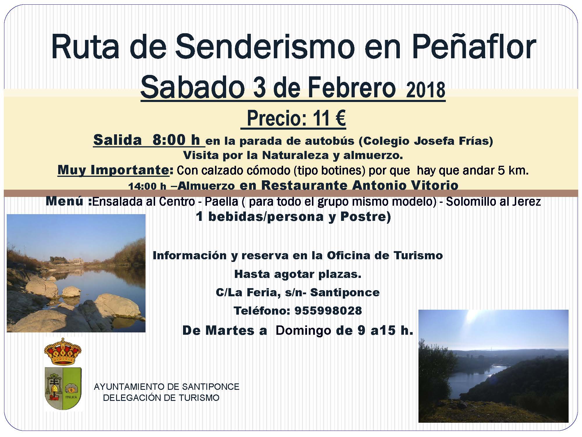 Imagen Ubicación Categoría noticia Turismo Mostrar en el carrusel de la sección No Fecha Jue, 18/01/2018 - 13:02 Más información http://www.santiponce.es/es/actualidad/noticias/Ruta-de-Senderismo-en-Penaflor/