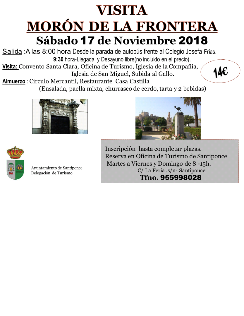 Inscripciones hasta completar plazas. Reserva en la oficina de turismo de martes a viernes y domingos. Teléfono 955998028