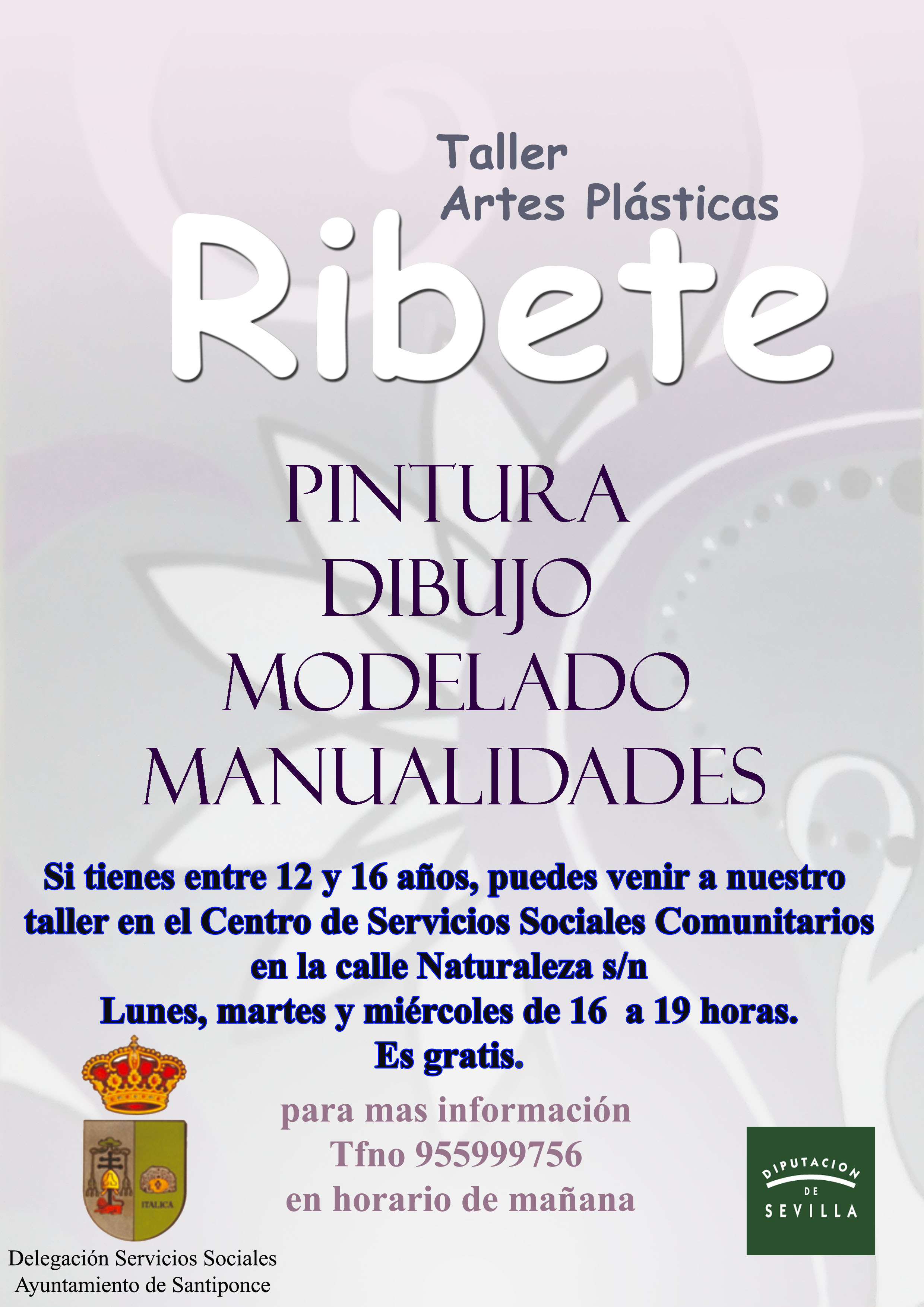 Imagen Ubicación Categoría noticia Asuntos Sociales Mostrar en el carrusel de la sección No Fecha Lun, 16/10/2017 - 16:29 Más información http://www.santiponce.es/es/actualidad/noticias/Taller-artes-plasticas-Ribete/