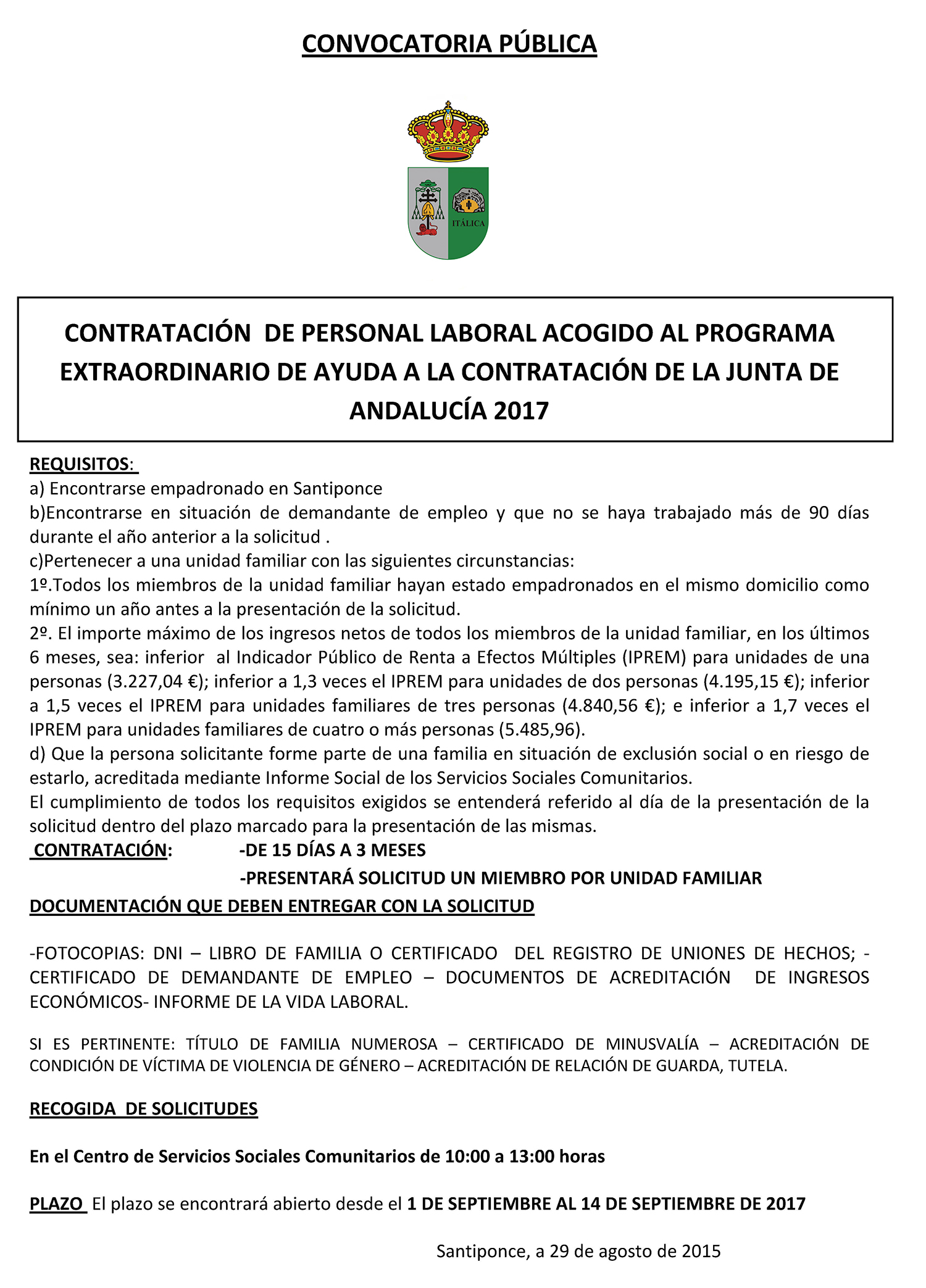 PLAZO: El plazo se encontrará abierto desde el 1 DE SEPTIEMBRE AL 14 DE SEPTIEMBRE DE 2017