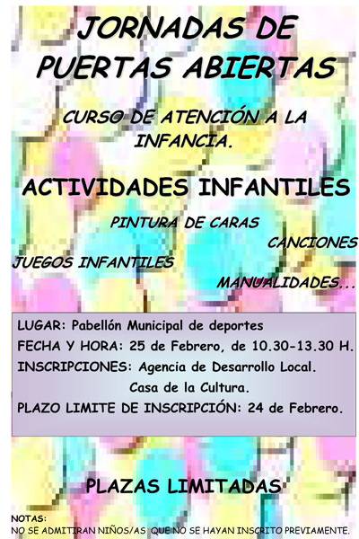 la Agencia de Desarrollo Local organiza a través del curso de Atención a laInfancia organiza su II Jornada de Puertas Abiertas para aplicar los conocimientos que están impartiendo.