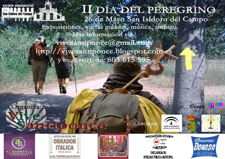 Imagen Ubicación Categoría noticia Turismo Mostrar en el carrusel de la sección No Fecha Jue, 16/05/2013 - 17:53 Más información http://www.santiponce.es/es/actualidad/noticias/II-Dia-del-Peregrino/