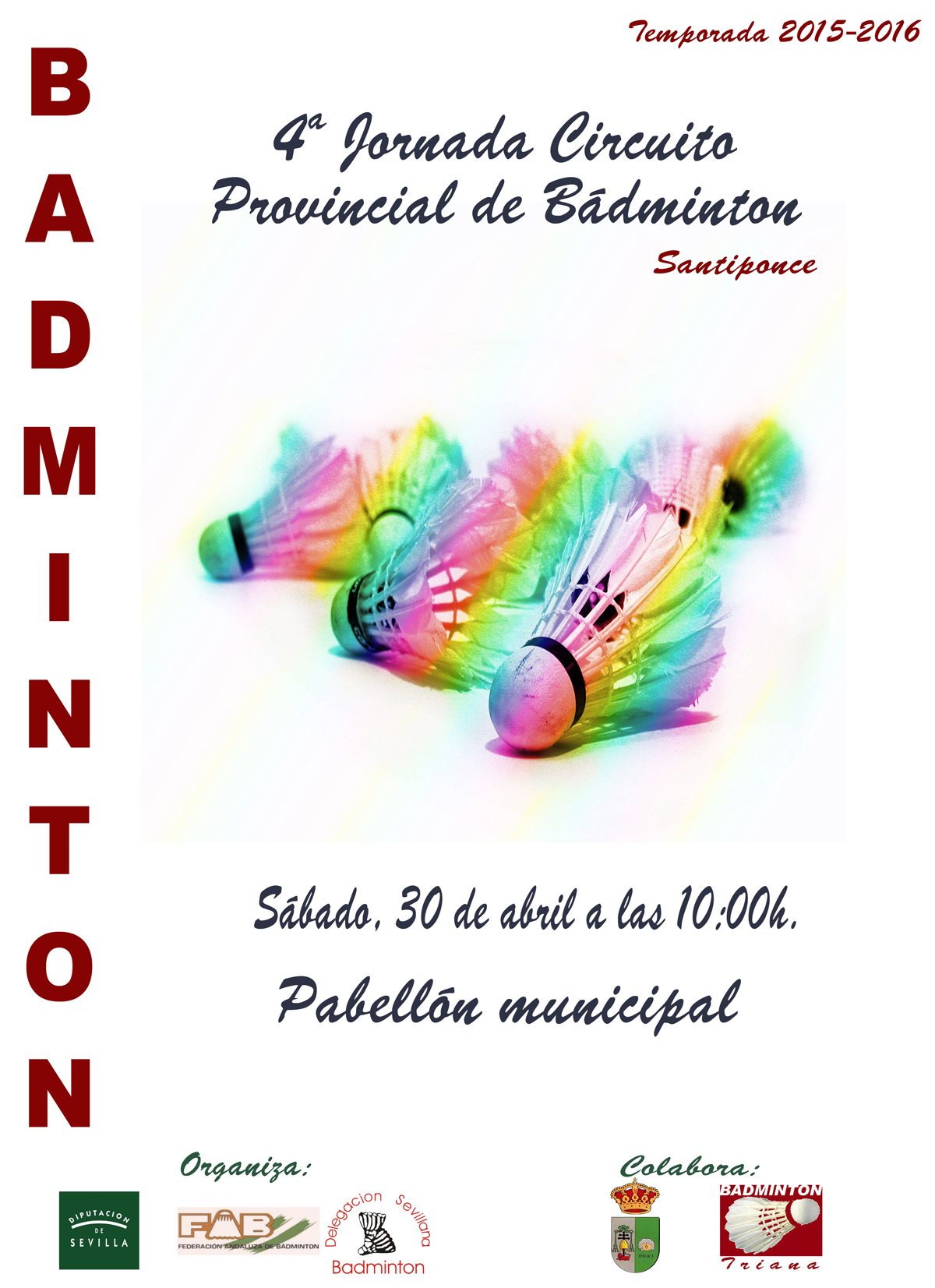 Imagen Ubicación Categoría noticia Deporte Mostrar en el carrusel de la sección No Fecha Vie, 29/04/2016 - 19:28 Más información http://www.santiponce.es/es/actualidad/noticias/4-Jornada-circuito-provincial-d…