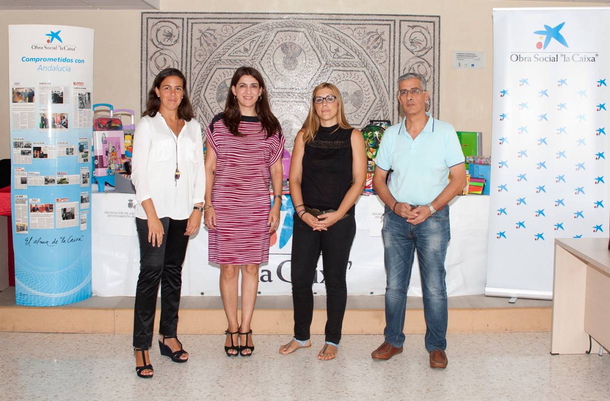 El miércoles 10 de Septiembre se expuso el material elegido para las familias en la entrada del CEIP "Josefa Frías" y el jueves 11 de Septiembre se expuso en el Salón de Plenos del Ayuntamiento donde la Sra. Directora de la Caixa de Santiponce y la Sra. Delegada de Zona de la misma han inaugurado el proyecto junto con el Sr. Alcalde y la Sra. Delegada de Asuntos Sociales.