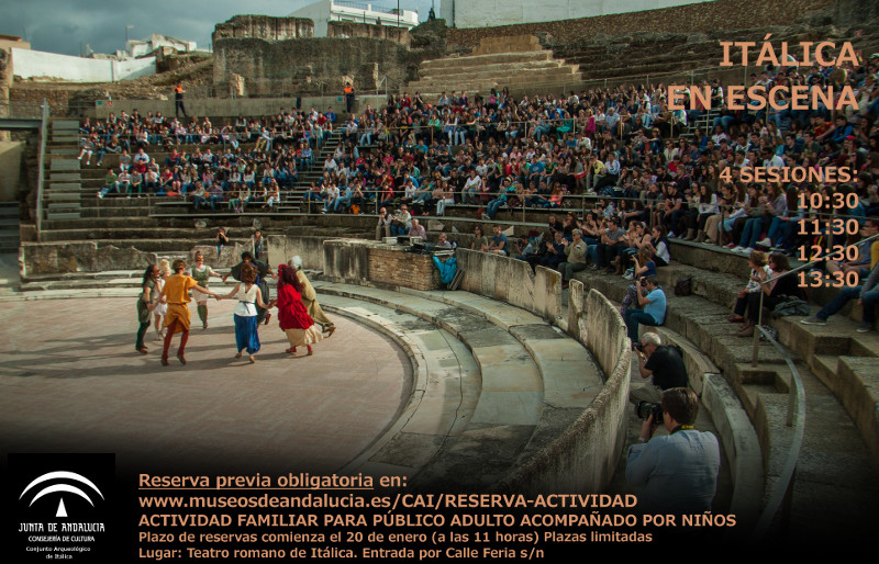 El próximo 24 de enero disfruta de la actividad familiar ITÁLICA EN ESCENA, específicamente dirigida a adultos acompañados por niños y niñas, que hemos preparado en el recinto del Teatro Romano.