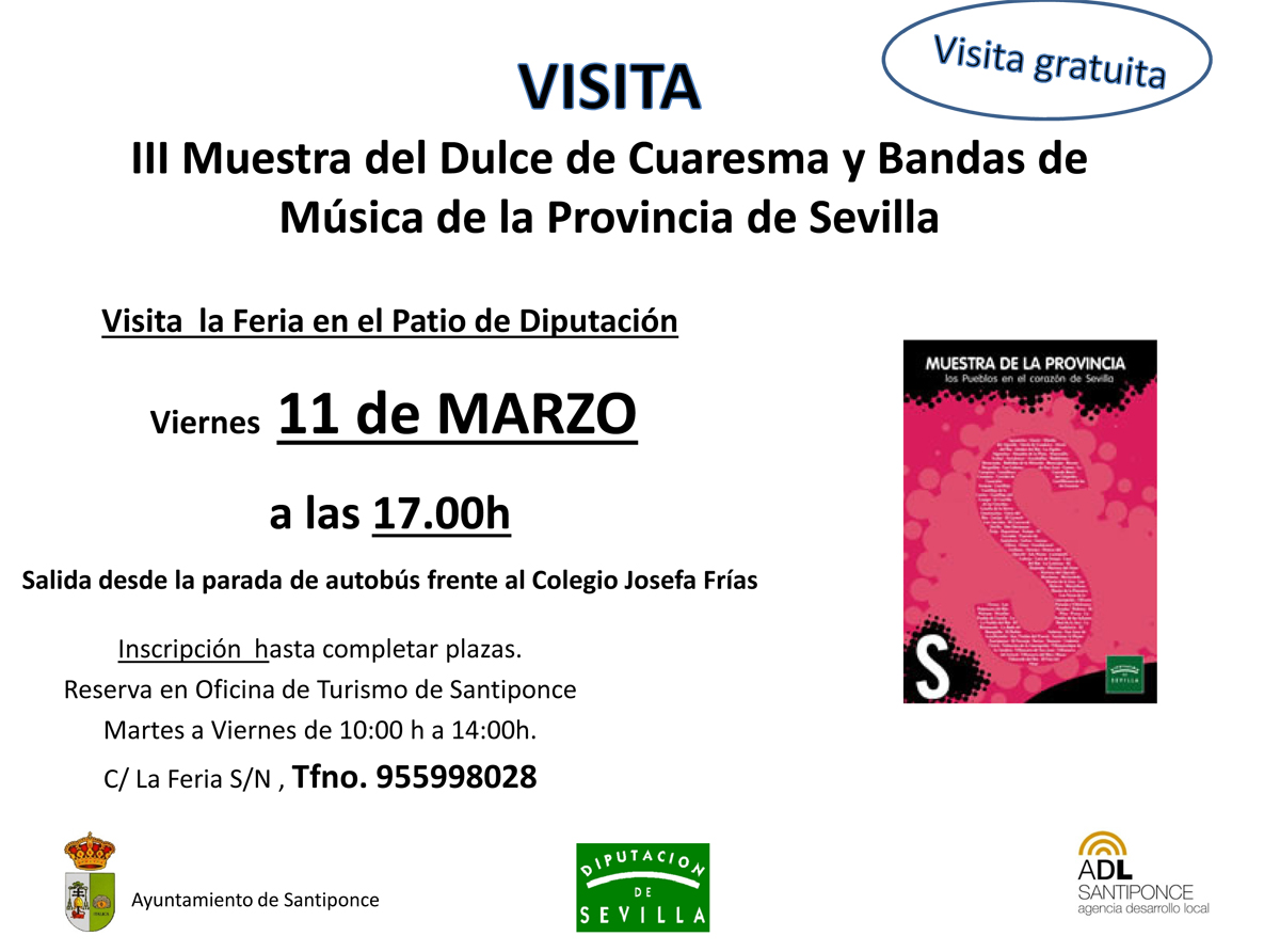 Imagen Ubicación Categoría noticia Turismo Mostrar en el carrusel de la sección No Fecha Vie, 04/03/2016 - 19:06 Más información http://www.santiponce.es/es/actualidad/noticias/Visita-III-Muestra-del-Dulce-de…