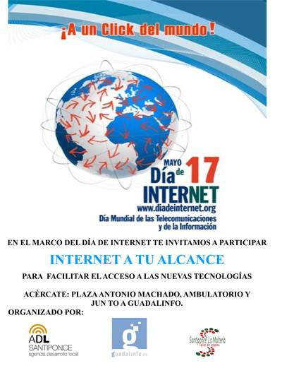 La actividad se ha organizado desde la Agencia de Desarrollo Local y el Centro de Guadalinfo y cuenta con la colaboración de los alumnos del taller de empleo, para conmemorar el "Día Mundial de Internet".