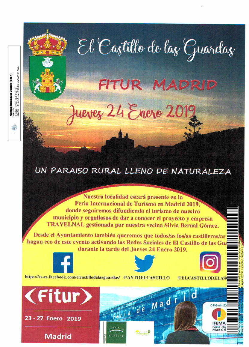 Castillo de las Guardas, estará presente en FITUR 2019 (Madrid), para seguir trabajando en la