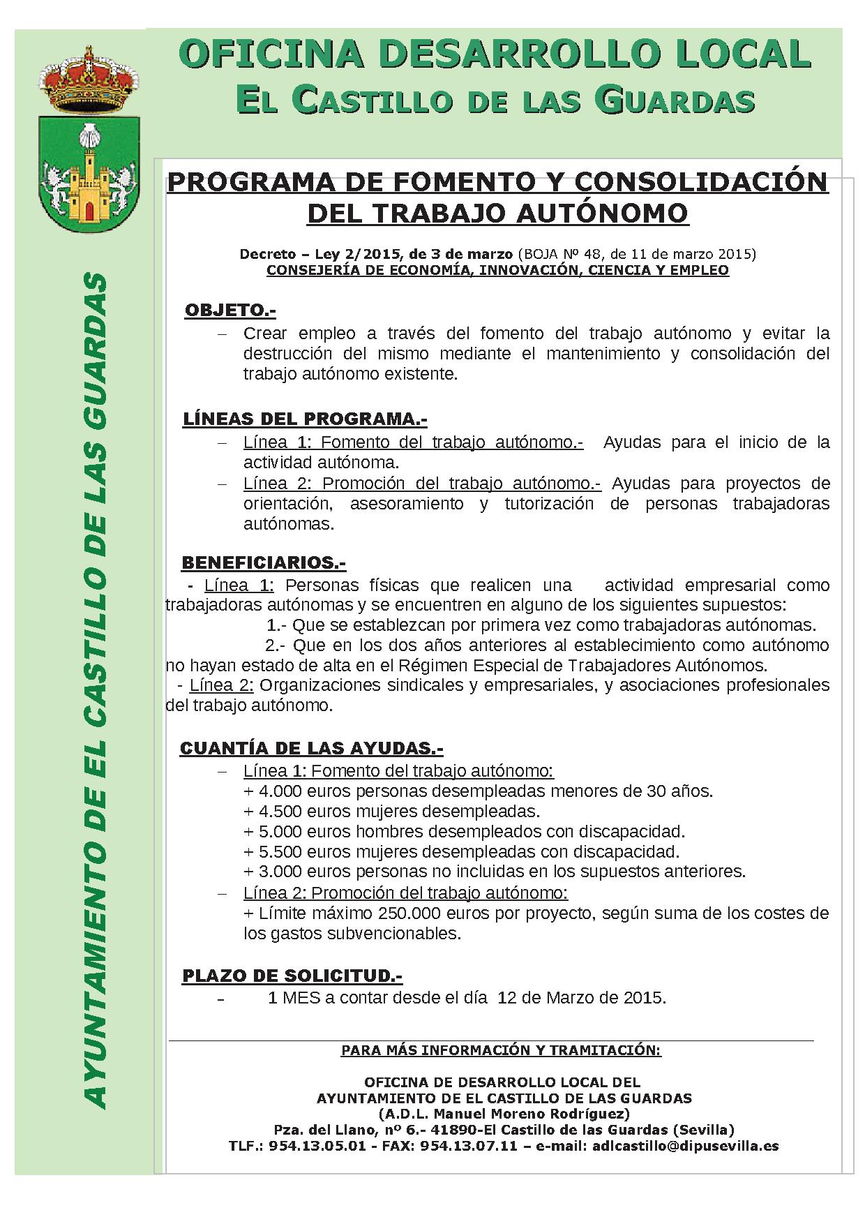 Imagen Ubicación Categoría noticia Empleo Mostrar en el carrusel de la sección No Fecha Sáb, 14/03/2015 - 16:43 Más información http://www.elcastillodelasguardas.es/es/actualidad/noticias/PROGRAMA-DE-FOMENTO…