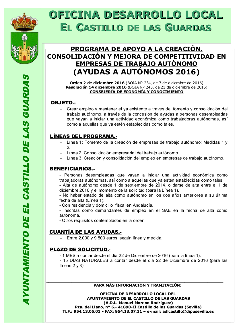 Imagen Ubicación Categoría noticia Empleo Mostrar en el carrusel de la sección No Fecha Vie, 23/12/2016 - 10:05 Más información http://www.elcastillodelasguardas.es/es/actualidad/noticias/Prgorama-para-la-cr…