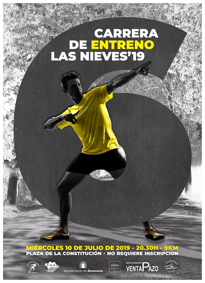 La Carrera de Entreno reproducirá el nuevo recorrido de la 6 Carrera Nocturna "Las Nieves'19", que tendrá lugar el viernes 26 de julio, convirtiéndose en una magnífica oportunidad para ponerte a prueba y descubrir los entresijos del nuevo recorrido de esta actividad veraniega, que durante 9 kilómetros te mostrará los bellos parajes benacazoneros en vísperas de las fiestas patronales de Las Nieves.