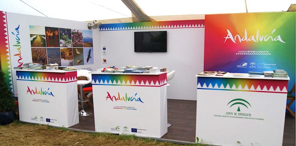En el expositor de Andalucía, tematizado con imágenes específicas de Doñana bajo el lema