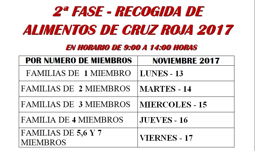 María nº 5), la segunda fase de los alimentos distribuidos por la Cruz Roja a través del Programa