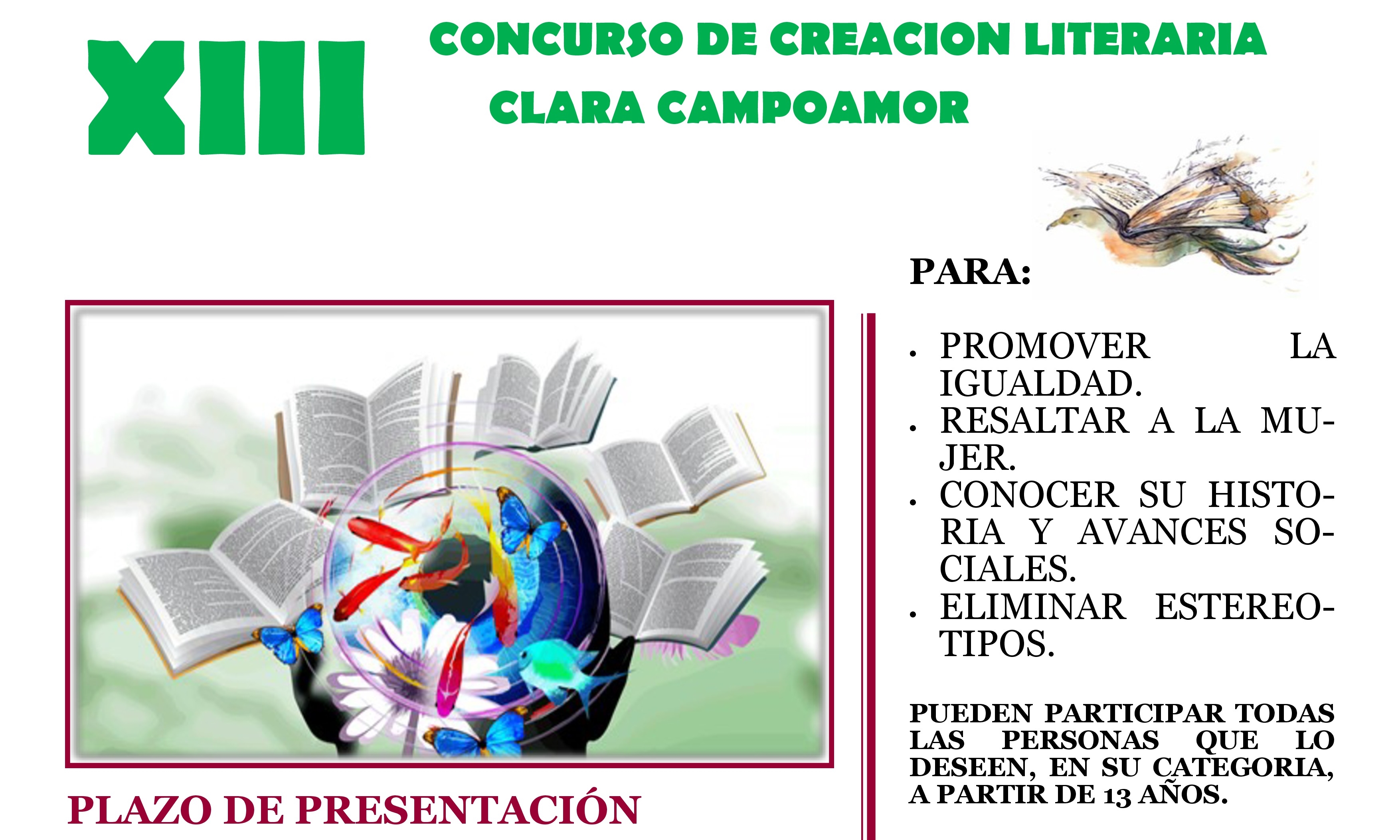 La Delegación de Igualdad del Ayuntamiento de La Puebla del Río, con motivo de la campaña del 8 de marzo de 2019, Día Internacional de la Mujer, convoca la XIII edición del concurso de creación literaria "Clara Campoamor".