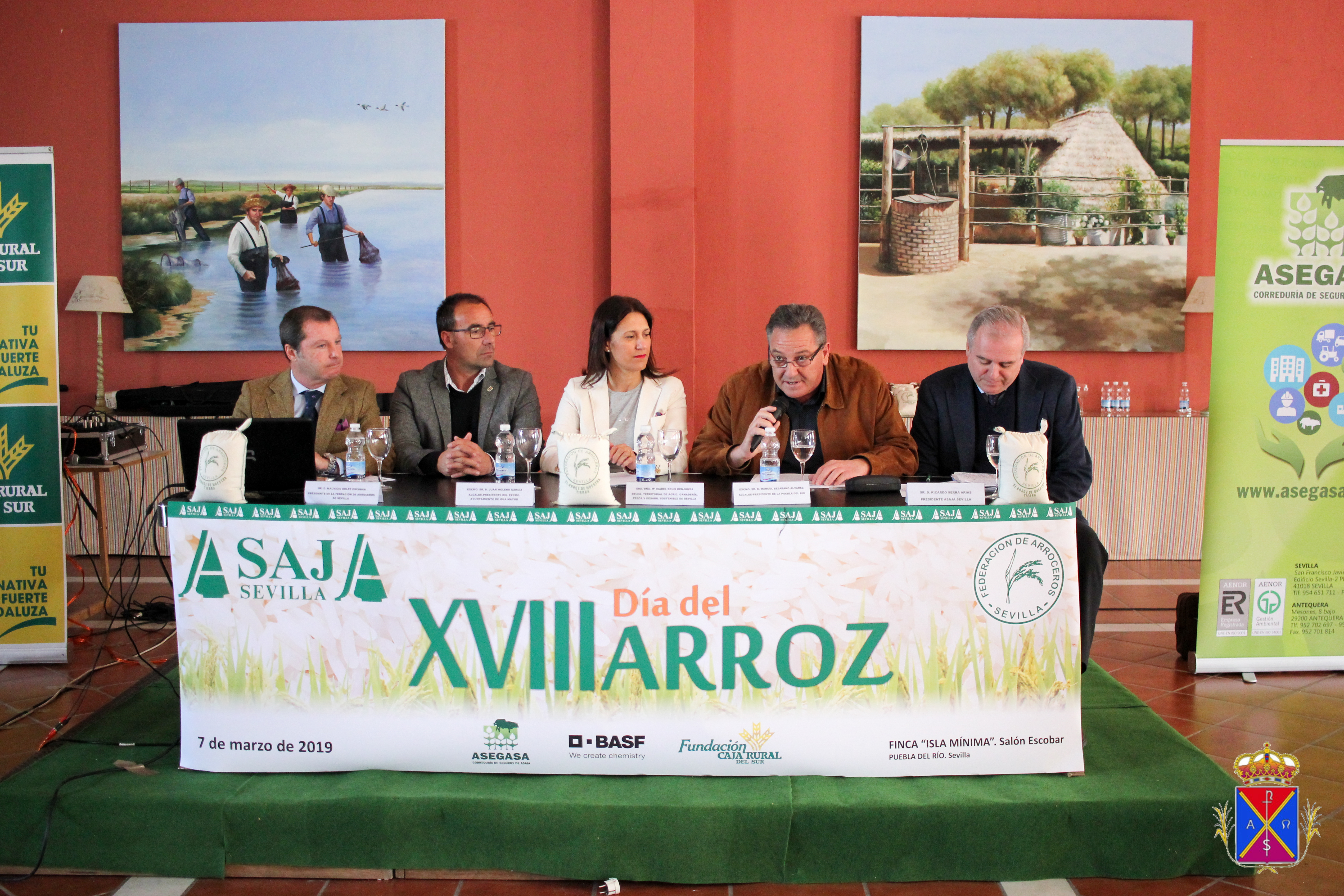El alcalde de La Puebla del Río, Manuel Bejarano, ha participado este jueves, 7 de marzo, en la inauguración de la decimoctava edición del Día del Arroz, un evento organizado por ASAJA-Sevilla que se ha celebrado en la finca Isla Mínima. El primer edil cigarrero ha estado acompañado por el alcalde de Isla Mayor, Juan Molero; la delegada territorial de Agricultura, Ganadería, Pesca y Desarrollo Sostenible en Sevilla, Mª Isabel Solís; el presidente de la Federación de Arroceros de Sevilla, Mauricio Soler, y el secretario general de ASAJA-Sevilla, Eduardo Martín. Además, también ha asistido la concejala popular cigarrera, Mª Gracia Mendoza, acompañando a la delegada territorial.