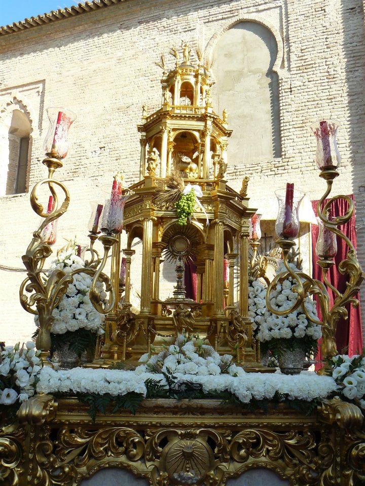 Su salida en procesión tuvo también un privilegio especial, desde casi sus comienzos: el poder hacerlo por la tarde. Existe un curioso documento â"un simple oficio- en su poder en el que el secretariado de Cámara del Arzobispado de Sevilla contesta a la petición conjunta del Alcalde de La Puebla y de su cura párroco en el sentido de que la procesión del Corpus de nuestro pueblo pueda celebrarse no por la mañana, como era costumbre, sino por la tarde. Se accede a lo solicitado, pero se añade âa condición de que a la caÃda del sol vuelva al templo la procesión, a fin de evitar cualquier profanación o desorden que de otro modo pudiera resultarâ. El documento es de 1871, y es de suponer que desde entonces la procesión esté saliendo por la tarde.