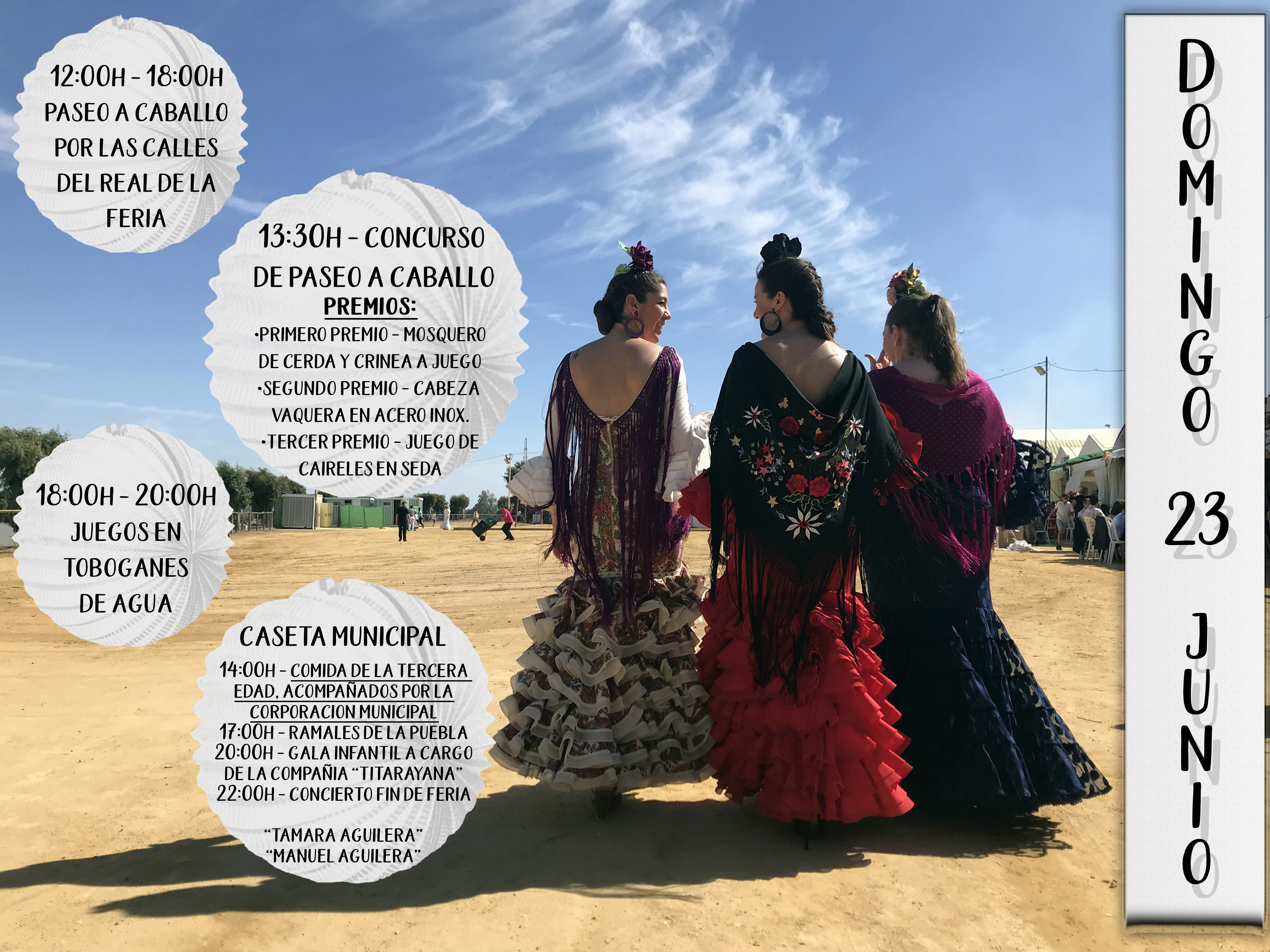 â El domingo, último dÃa de feria, volverá el paseo a caballos por las calles del real y se celebrará a mediodÃa la comida de la tercera edad en la Caseta Municipal.
