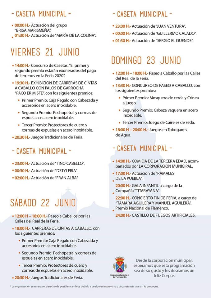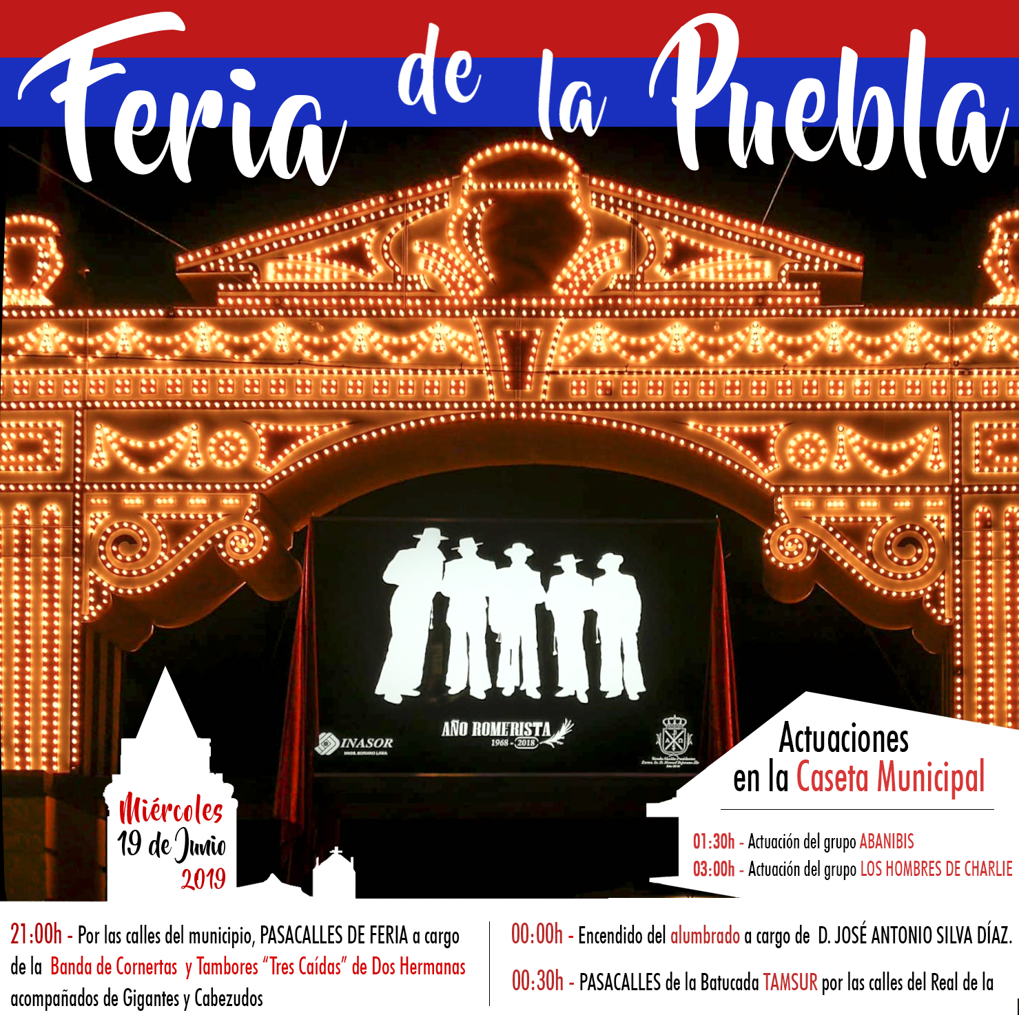 De esas fechas â"segunda mitad del siglo XIX-se tienen escasas noticias sobre las celebraciones EucarÃsticas de La Puebla; pero, parece ser, que la procesión se limitaba a la salida a la calle Duquesa de Sevillano (antes de la Iglesia, después de Miro, y hoy âLa Niñaâ) y alrededores de la iglesia, que se adornaban con tarajes, álamos y unos farolillos âal estilo venecianoâ: de papel con velas encendidas dentro. La procesión se limitaba, entonces, a ese recorrido, como es habitual en todos los pueblos actualmente, no existiendo aún la feria ni, por supuesto, habÃan aparecido aún las casetas.