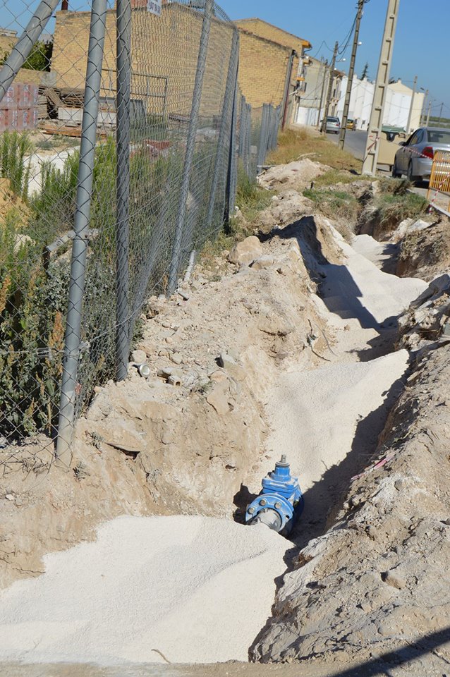 Prosigue hoy la canalización de la nueva red de saneamiento instalada en la calle Agua, en la intersección del Camino de las Romeras con la calle Miguel de Cervantes. La obra se ejecuta con cargo al presupuesto municipal y por operarios municipales.